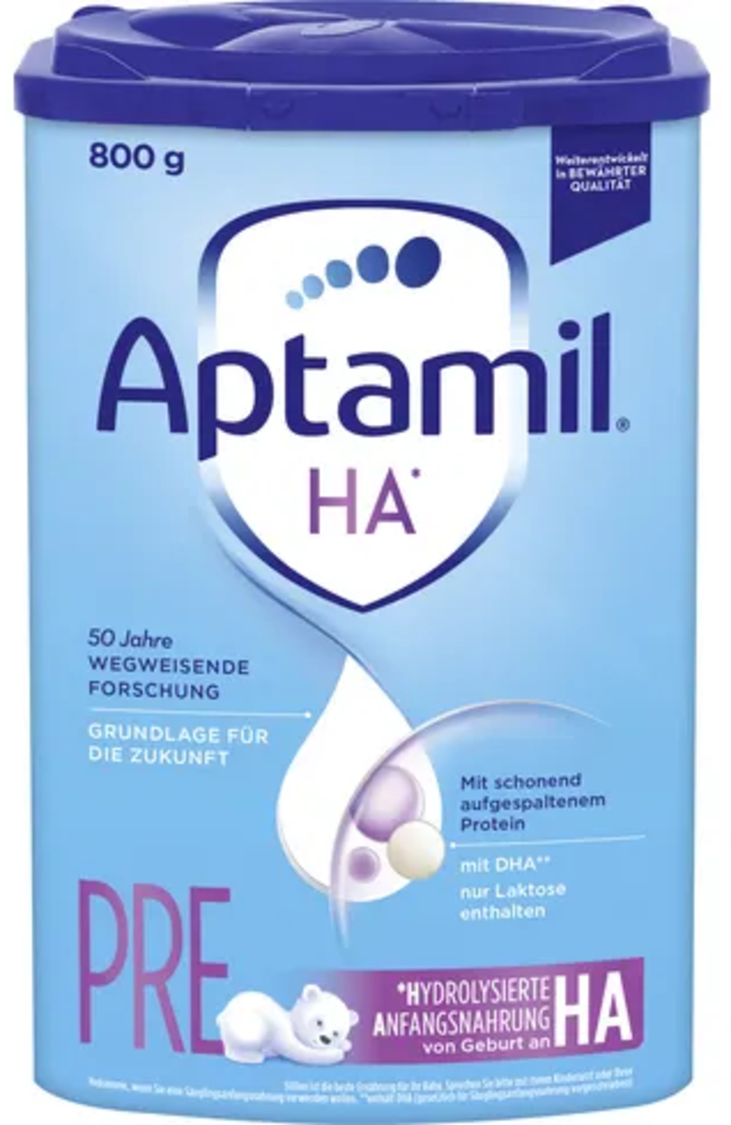 - HA PRE is geschikt als enige voeding of als aanvulling op borstvoeding vanaf de geboorte tot het einde van de flesvoedingsperiode.