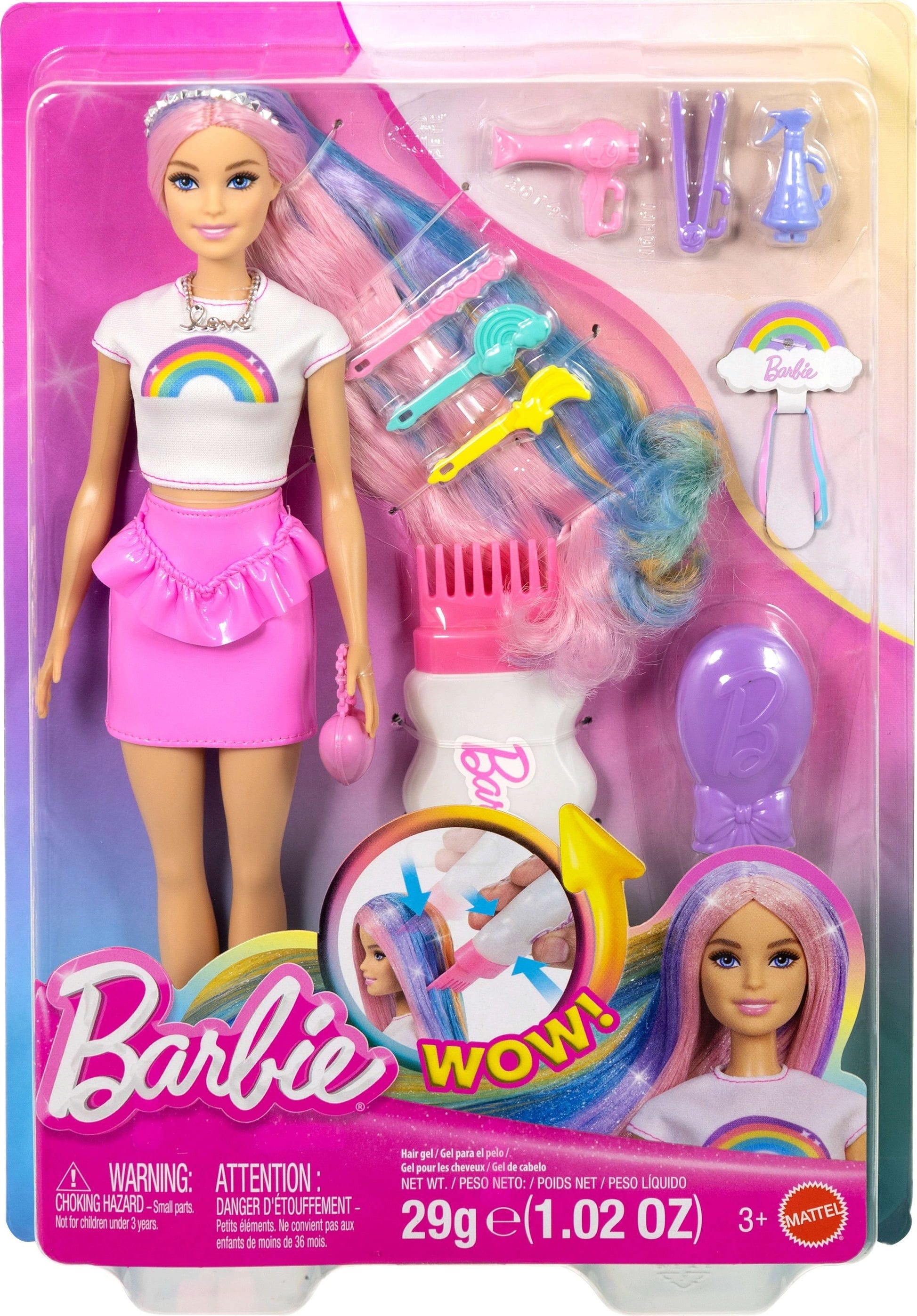 - Barbie met 20 cm lang regenbooghaar