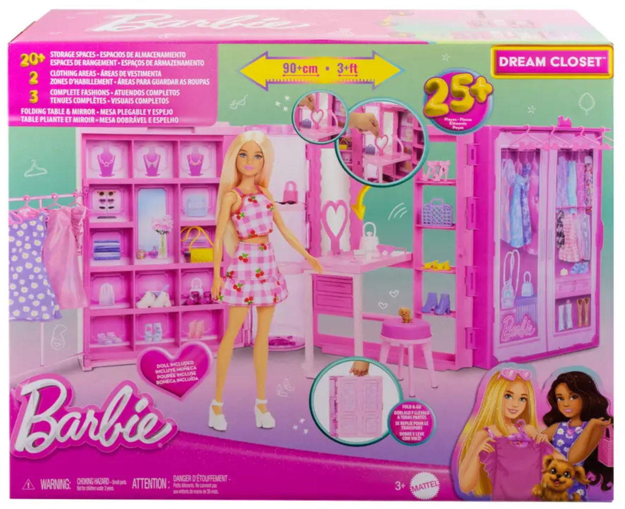Met de Barbie droomgarderobe kunnen kinderen urenlang stylen, combineren en verhalen verzinnen! De bijna 1 meter brede speelset biedt ruimte voor outfits, accessoires en zelfs het hondje - voor onbeperkt modeplezier.