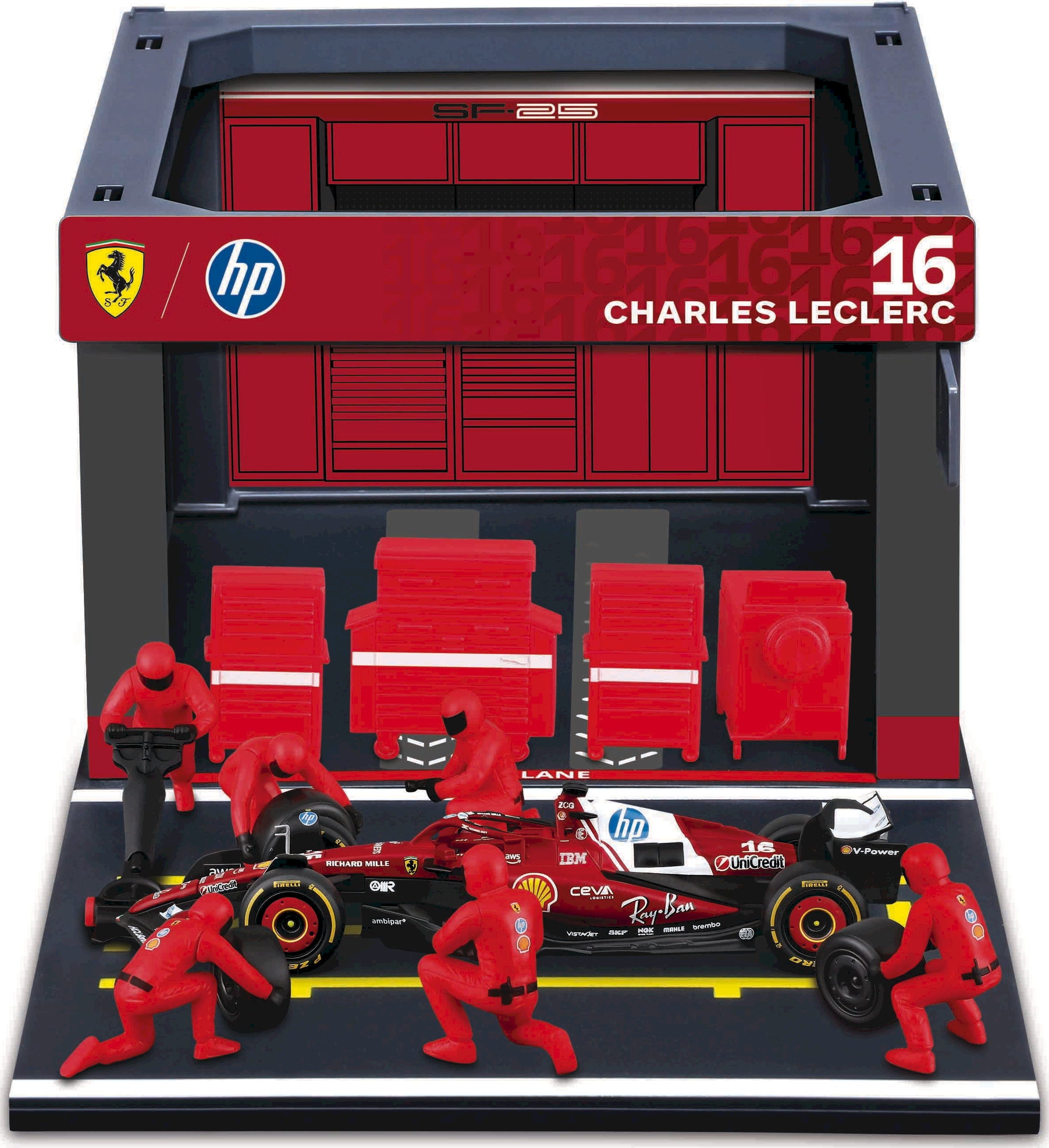 Bburago F1 Ferrari SF-25 Pit Pass ´25, WB, #16 Leclerc, 1:43