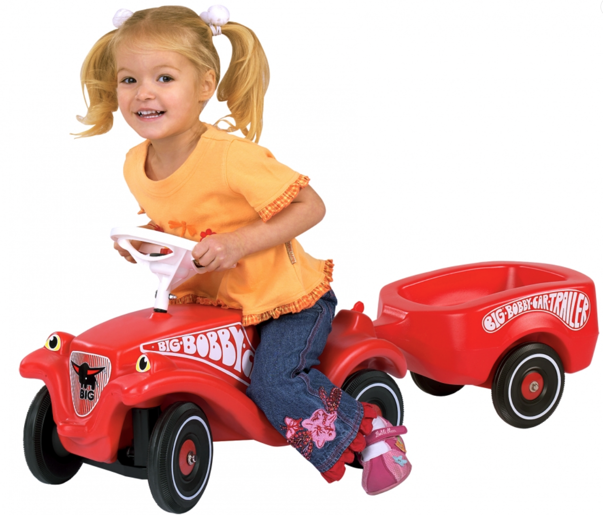 De trailer is met de bijbehorende veiligheidskoppelingspen kinderlijk eenvoudig te bevestigen op alle BIG Bobby Cars. Dankzij de afgeronde hoeken en de stabiele banden is de veiligheid gegarandeerd, zelfs tijdens de meest gewaagde manoeuvres.