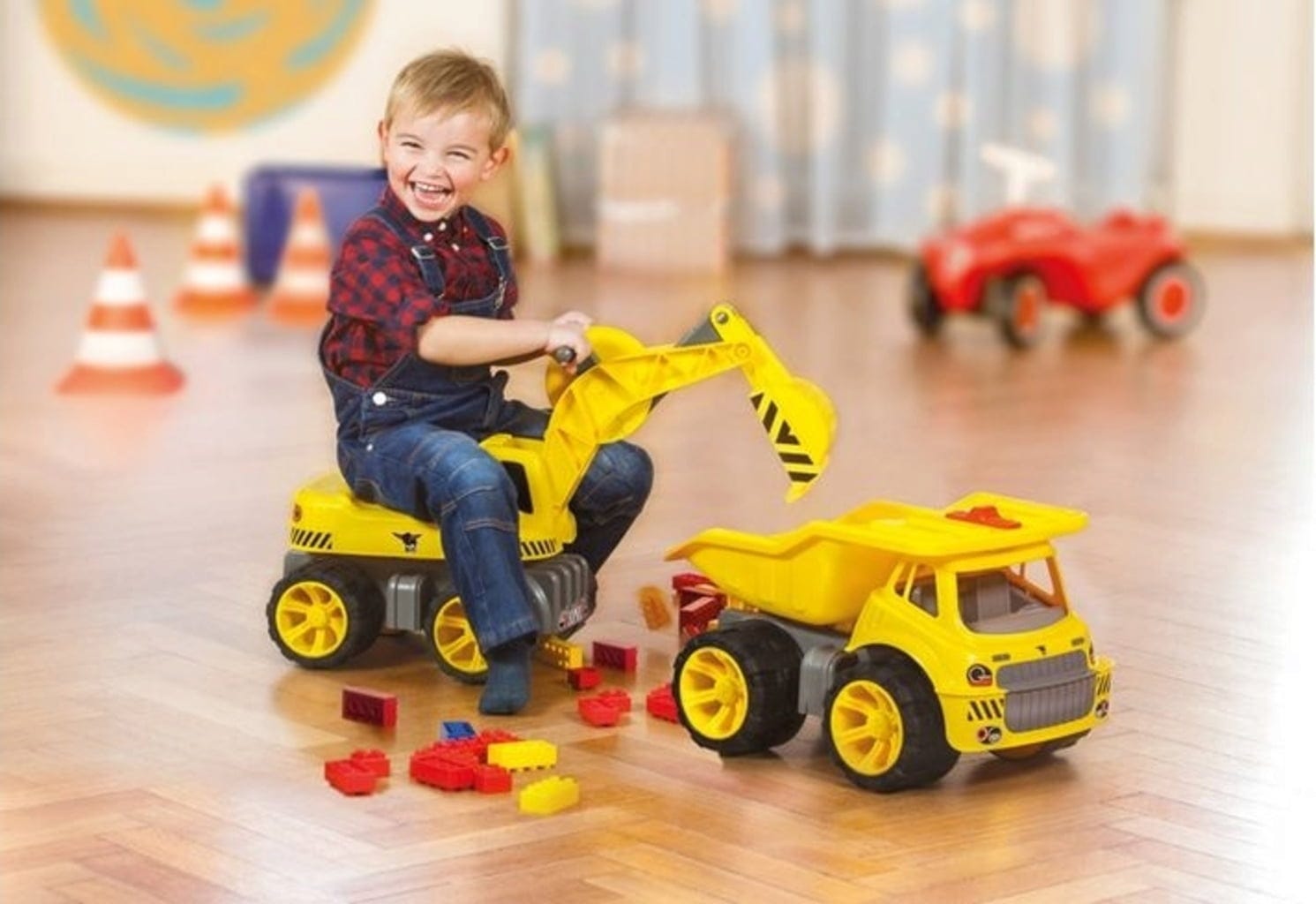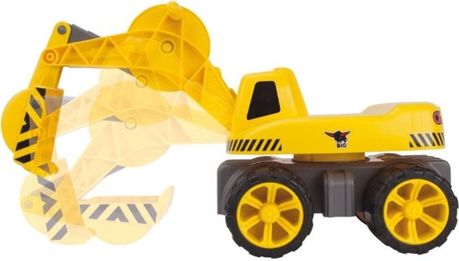 Graven, scheppen en laden – met de BIG Maxi Digger worden dromen werkelijkheid! Net als bij een echte graafmachine kan de bovenbouw 360° draaien en zijn zowel de arm als de schep volledig beweegbaar. Maar het allerleukste is: kinderen kunnen zelf op het voertuig gaan zitten om het te besturen!