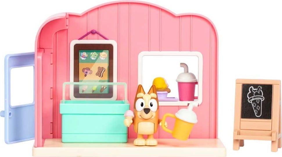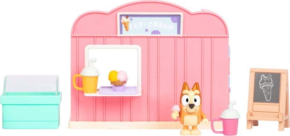 Wat is er leuker dan een bezoekje aan de ijssalon? Met deze liefdevolle mini-speelset help je Bingo haar favoriete smaak ijs uit te kiezen. De set scoort met leuke details zoals een vrieskist, een krijtbord en verschillende drankjes. Het interactieve ontwerp met een deur die open kan en een verkoopvenster nodigt kinderen uit om hun favoriete scènes realistisch na te spelen.