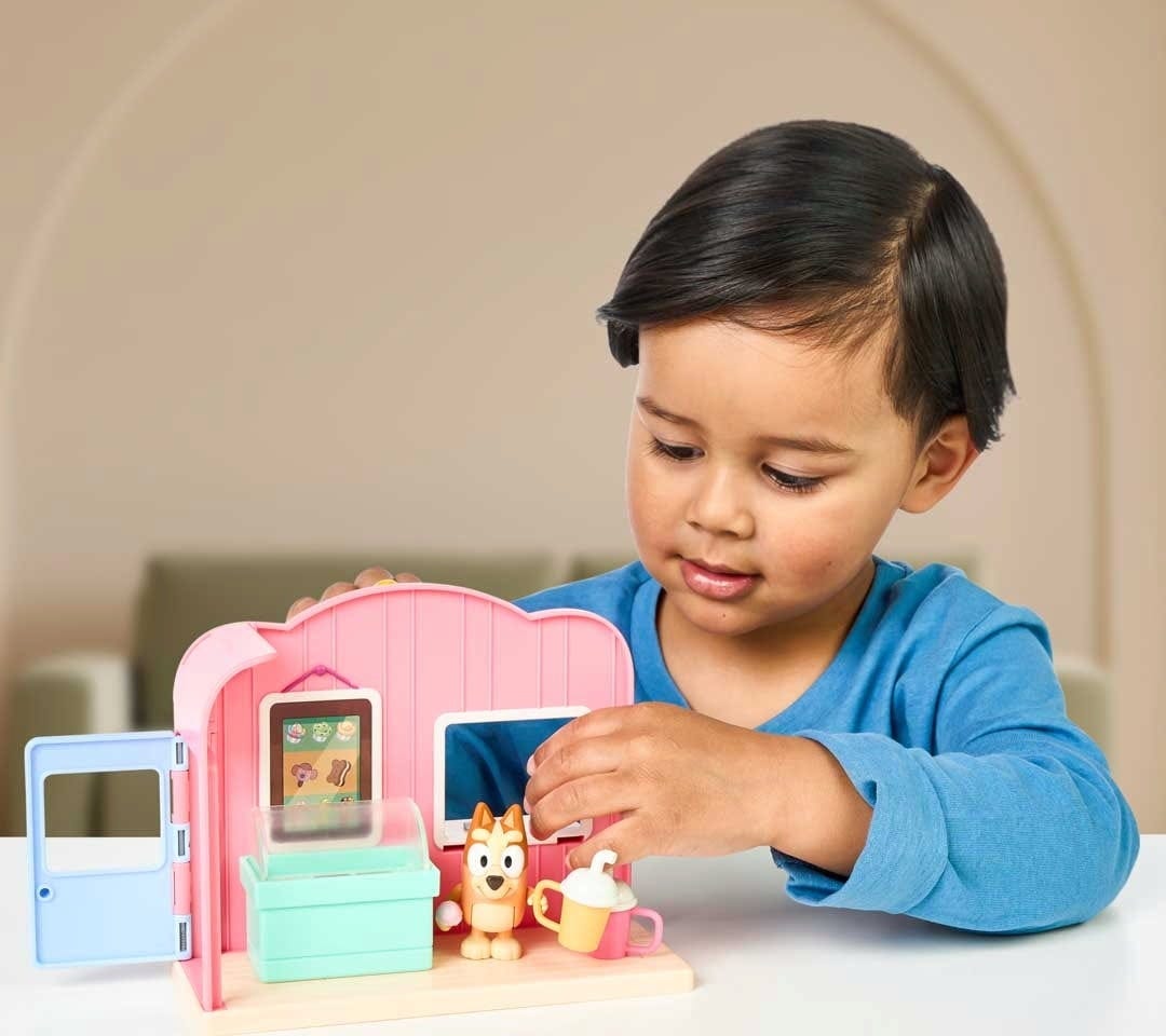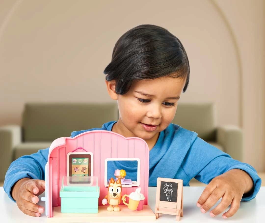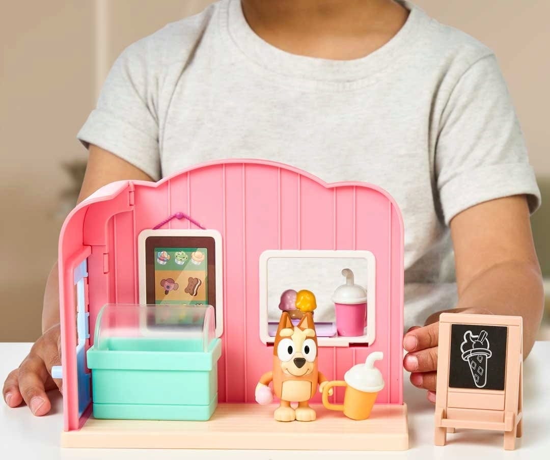 De meegeleverde Bingo-figuur heeft beweegbare armen en benen, zodat ze perfect achter de toonbank kan staan. Met het bijgevoegde stickervel kunnen je kleintjes de ijssalon naar eigen wens decoreren en zo hun eigen persoonlijke Bluey-avontuur creëren.