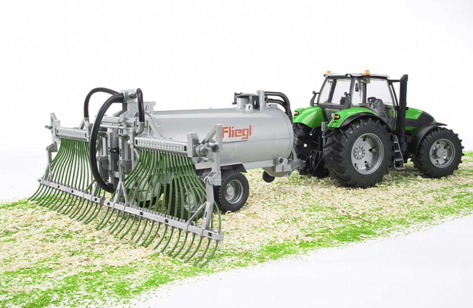 De giertank van de gerenommeerde fabrikant van landbouwtechniek Fliegl wordt gebruikt om vloeibare mest en kunstmest over de velden te verspreiden. Deze miniversie van de aanhanger kan voor een bijzonder realistische speelervaring met water worden gevuld en via de mestinjecteur op de wei worden geleegd. Als de aanhanger na de werkzaamheden thuis wordt gebracht, kan de mestinjecteur worden ingeklapt.