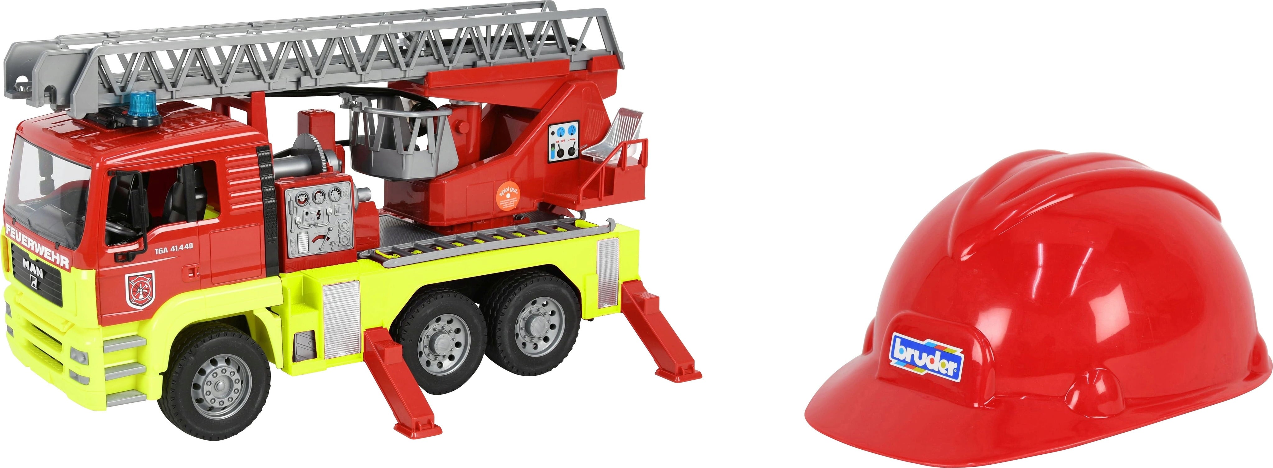 Bruder MAN TGA brandweer met draaischijfladder + L&S module + brandweer speelhelm
