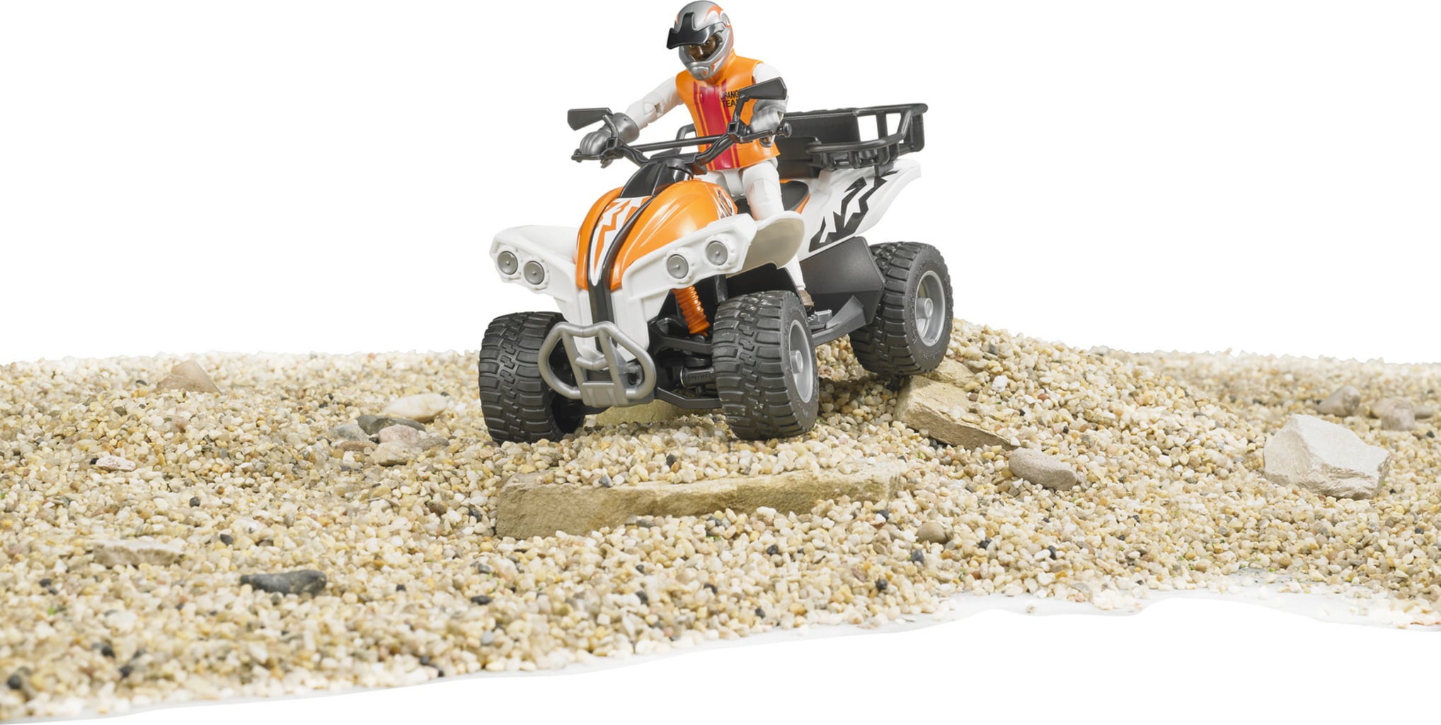 Dit hoogwaardige BRUDER-model maakt indruk met zijn gedetailleerde ontwerp, dat niets te wensen overlaat. De geveerde assen en de gemakkelijke bestuurbaarheid garanderen een doorslaggevend voordeel bij snelle ritten en de trekhaak, een afneembare bagagedrager en een sportieve bestuurdersstoel maken de speelervaring compleet.