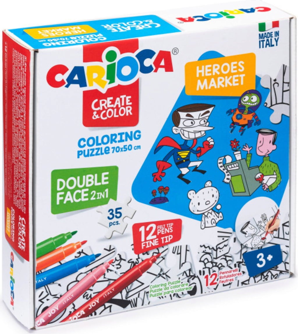 Carioca Coloring Puzzle Heros & Market + 12 Felt Tip Pens