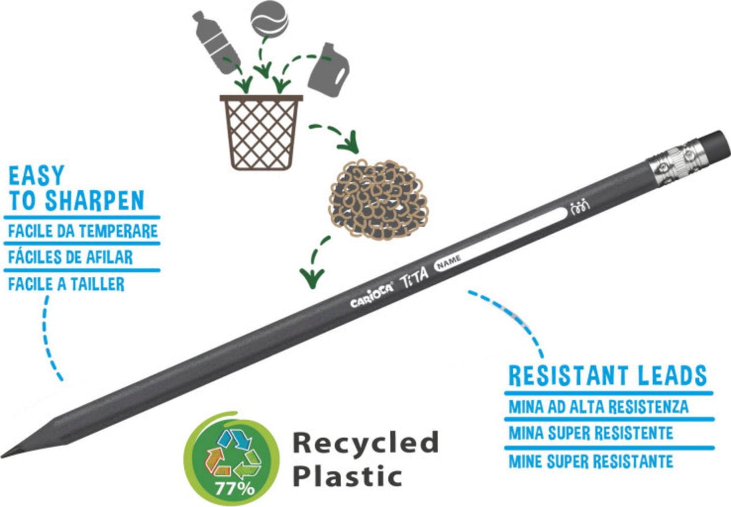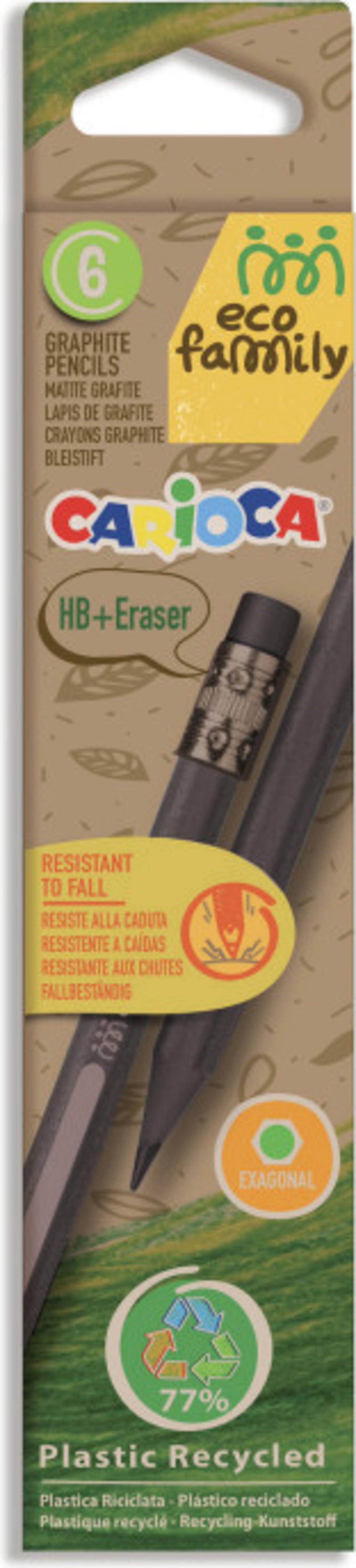Carioca Eco Family HB Pencils with Eraser, 6 Stuks