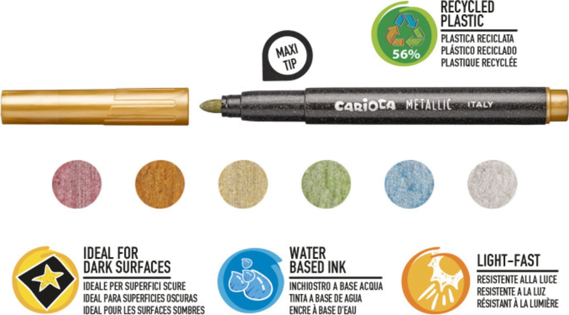 Carioca Metallic Maxi Felt Tip Pens, 6 Stuks