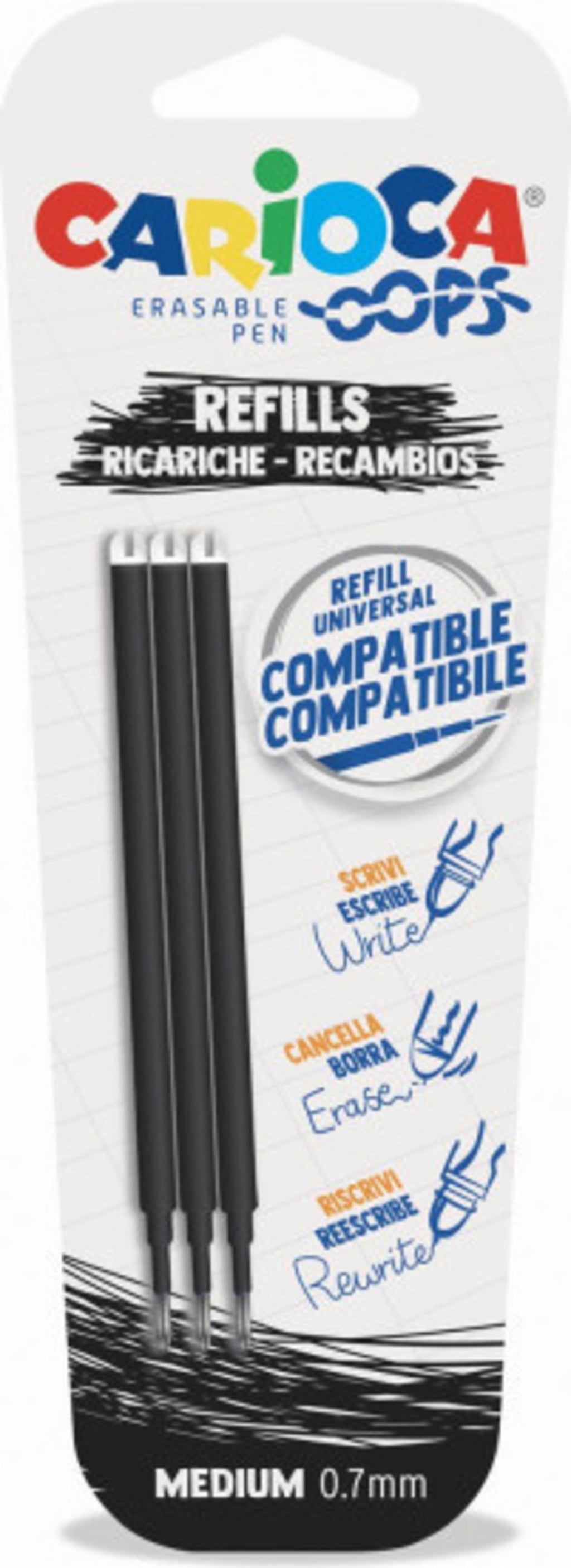 Carioca Oops Erasable Pens Refill, Black (3 Stuks)