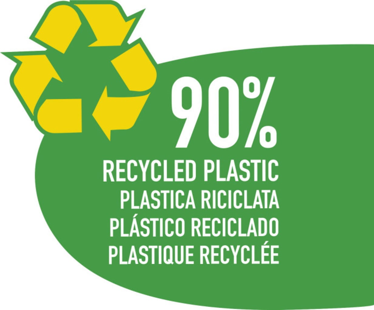 - Gemaakt van 90% gerecycled plastic