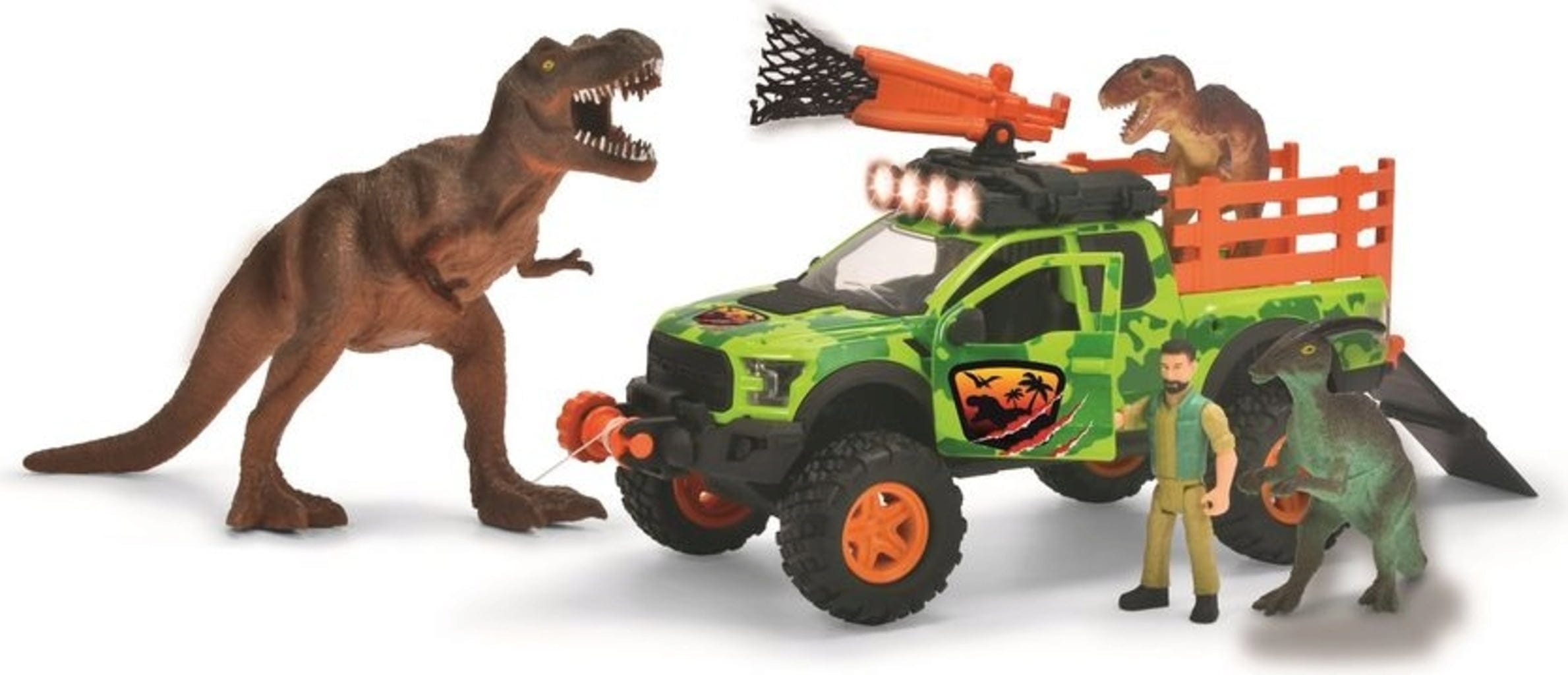 Oh nee, de dinosaurussen zijn op de vlucht! Met de Ford Raptor is de achtervolging door het terrein geen probleem. De Ranger haalt de op hol geslagen dinosaurussen al snel in. De nettenwerper vangt ze op zodat ze in de kooi geplaatst kunnen worden.