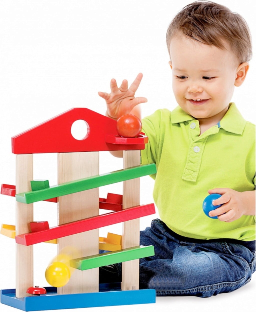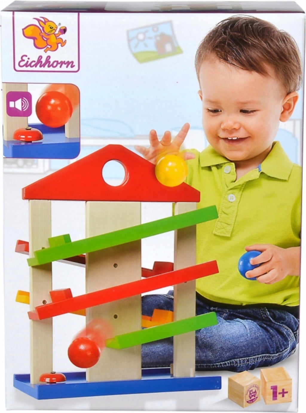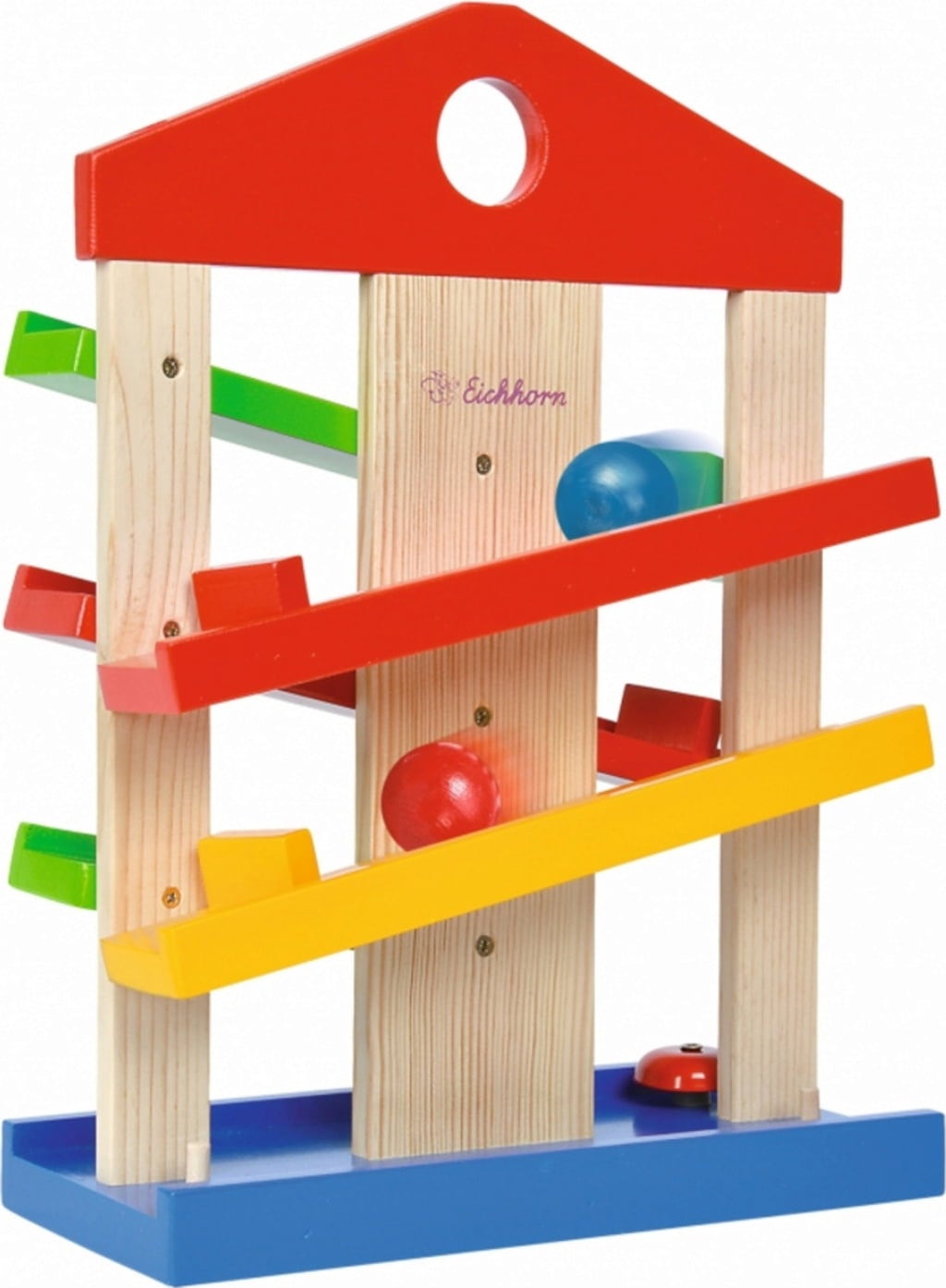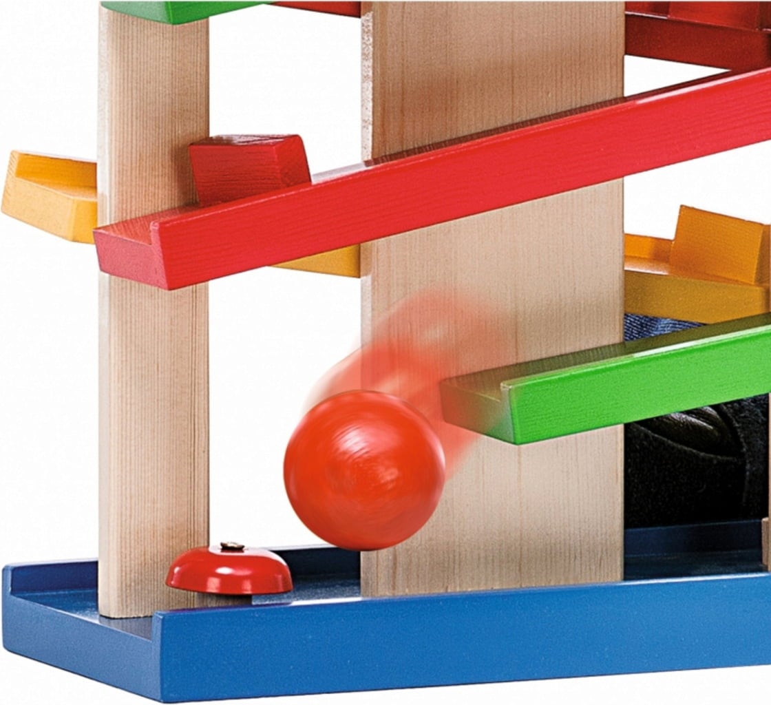 Ballenbanen zijn klassiek speelgoed. Wanneer de ballen over de vijf kleurrijke rails naar beneden rollen, zullen ze gegarandeerd de kleintjes bekoren, die dit geweldige spektakel keer op keer willen zien. Aan het einde van de rails wacht een bel op de ballen, die een leuk rinkelend geluid maakt.