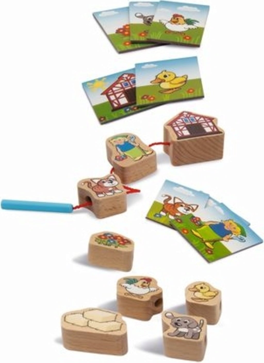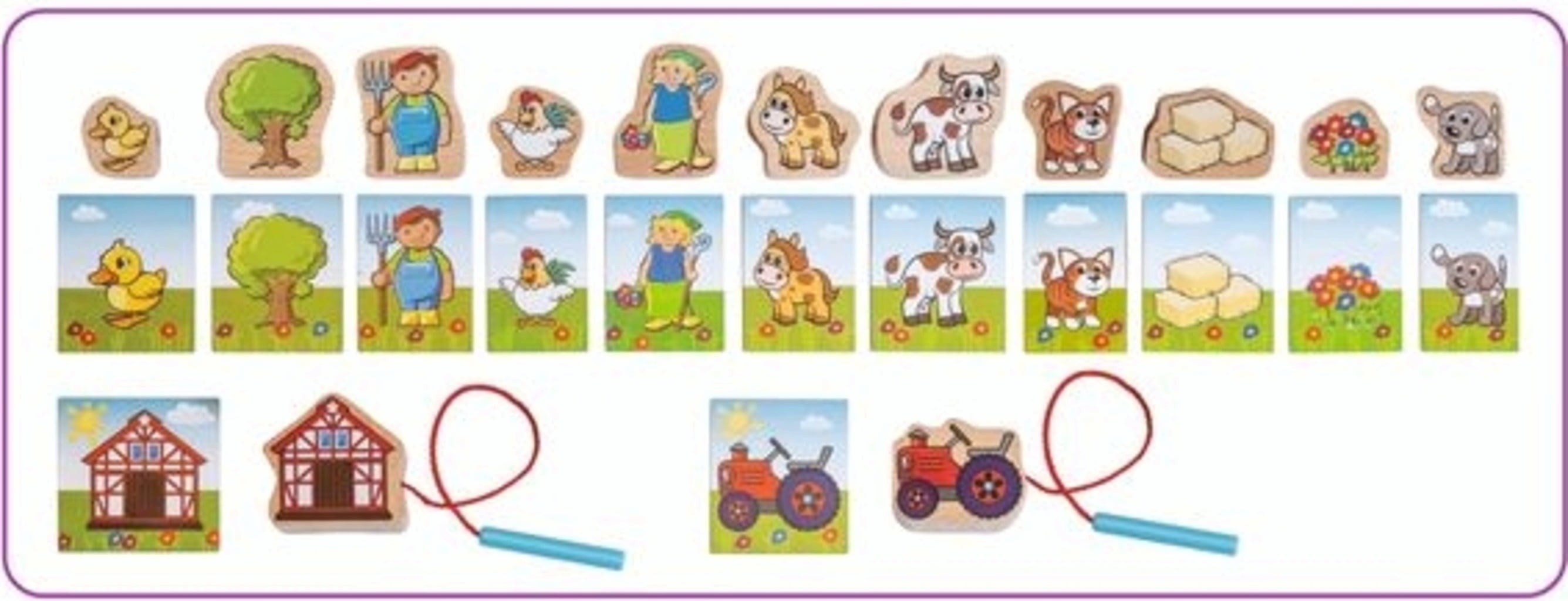 Wonder je over wat er allemaal te ontdekken valt op de boerderij en beleef veel rijgplezier. Gebruik de 13 sjabloonkaarten als inspiratie of verbind de 11 rijgelementen zoals jij dat wilt. Wat je ook beslist - het resultaat zijn spannende beeldverhalen met vrolijke motieven