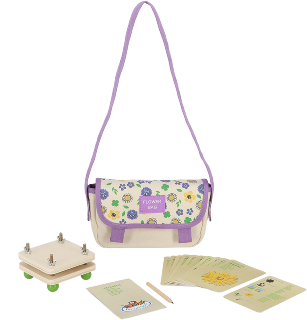 De ontdekkingstas ‘Bloemen’ is de perfecte set voor kleine natuuronderzoekers! De set bevat een praktische tas, een houten bloemenpers, informatieve kaarten over verschillende soorten bloemen in meerdere talen en een notitieboekje met pen - alles wat je nodig hebt voor een spannende bloemenexpeditie! Pak dus je ontdekkerstas en beleef spannende uren in de natuur.