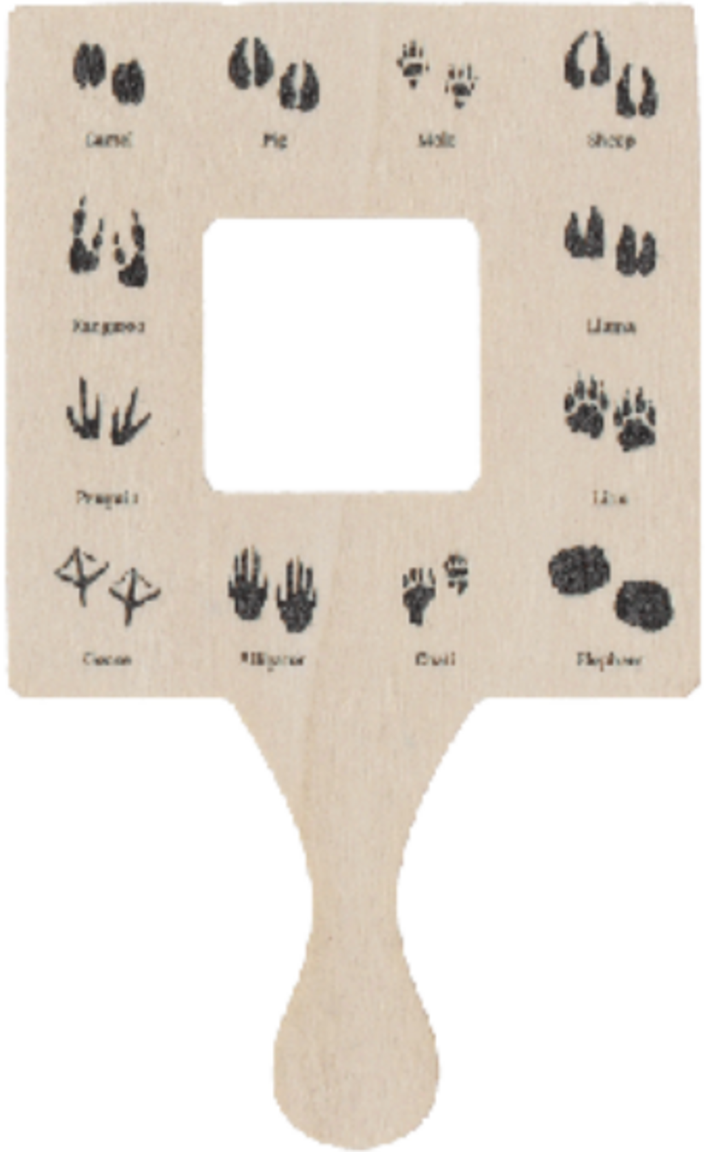 - Houten sjabloon voor het herkennen van voetafdrukken van dieren