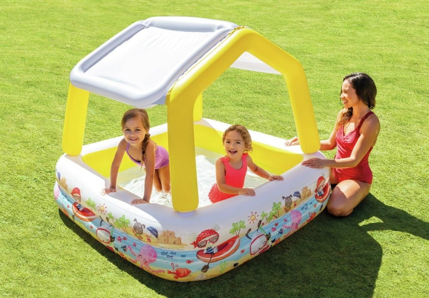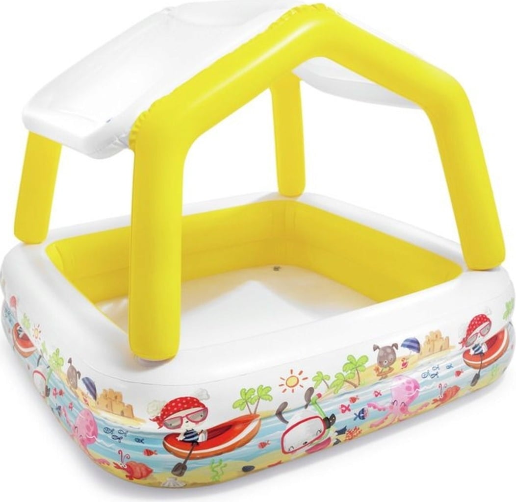 Het bijzondere aan dit zwembad is de afneembare zonwering. Deze biedt ideale bescherming tegen de zon. En als de zonwering niet nodig is, kan deze eenvoudig worden verwijderd