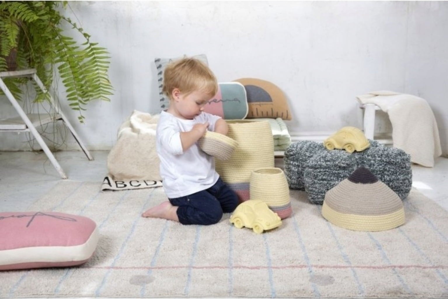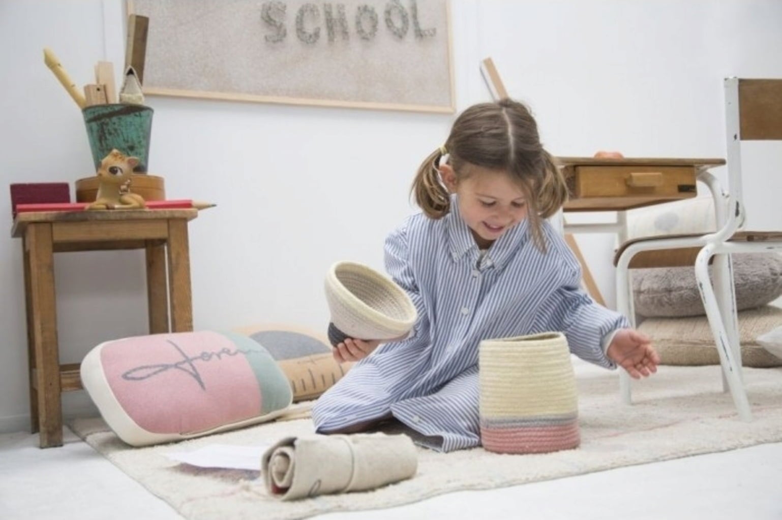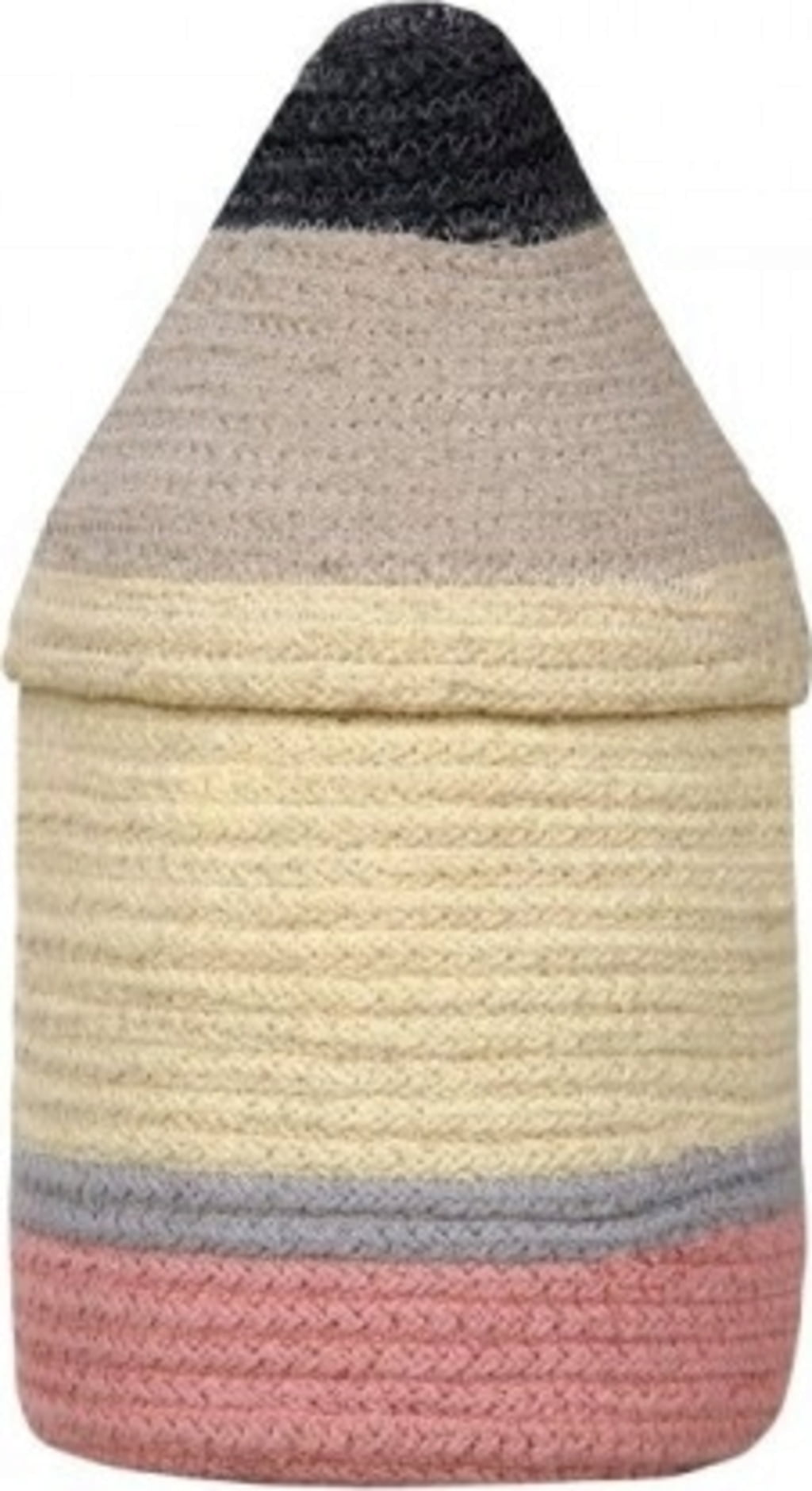 Deze mooie mand van geweven katoen is niet alleen een veilige plek om schoolspullen in op te bergen, want alles, van favoriet speelgoed tot sokken, kan erin. Deze mand is niet alleen heel praktisch, maar ook heel decoratief. Met zijn originele ontwerp legt hij een bijzonder mooi accent in de kinderkamer en creëert hij in een handomdraai een vrolijke sfeer.