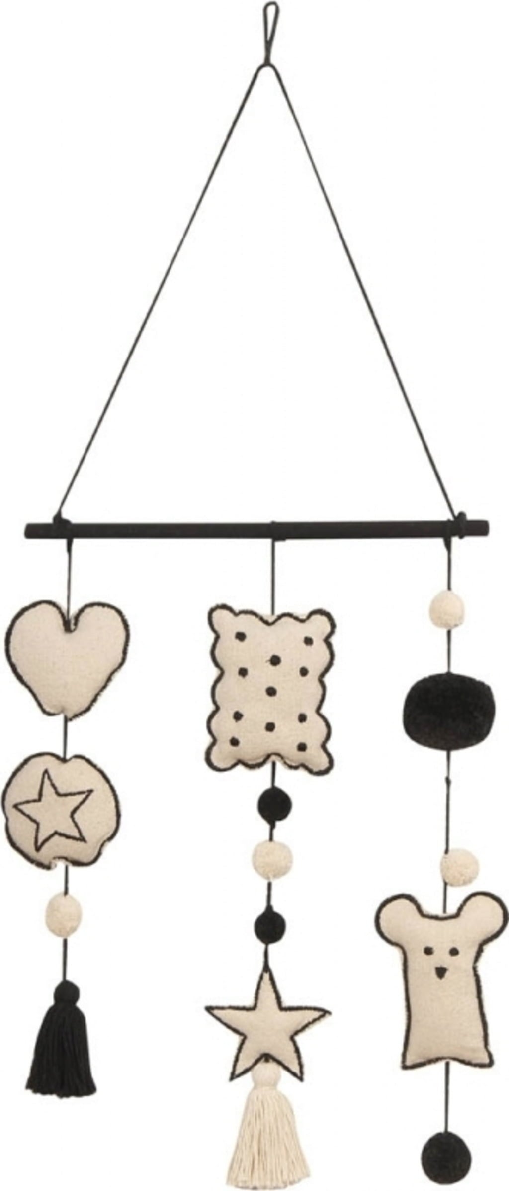 Met zijn schattige kussentjes in verschillende vormen is deze wanddecoratie van puur katoen een echte blikvanger in elke kinderkamer. Het muisje, hartje en sterretje in de natuurlijke kleur van katoen geven deze mooie decoratie zijn onweerstaanbare charme en brengen op een stijlvolle manier vrolijkheid in je huis.
