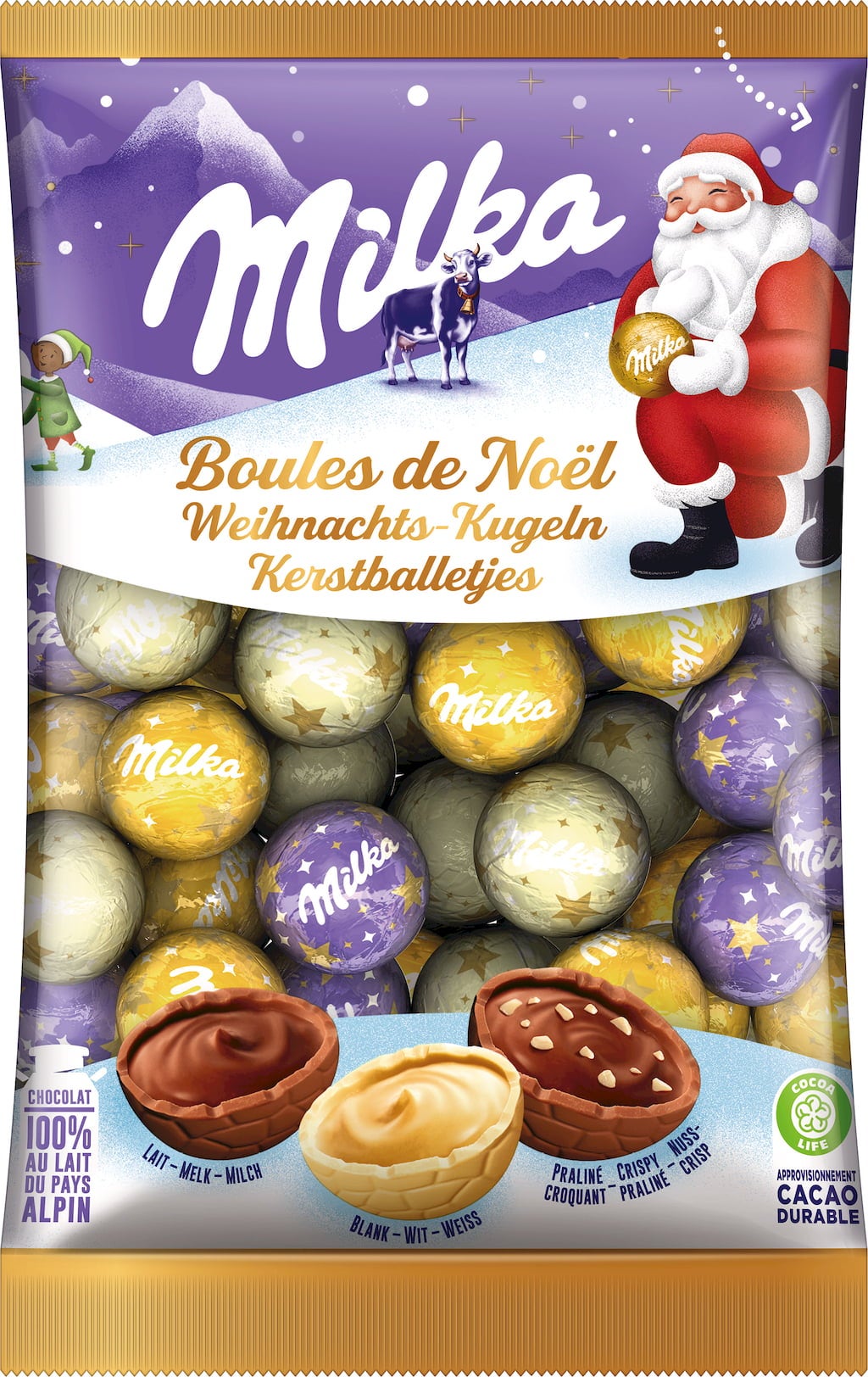 Deze ballen verrassen met hun knapperige omhulsel van de fijnste chocolade en de heerlijk aromatische kern van heerlijke chocoladecrème. Hun knapperige bite en de typische Milka-smaak horen gewoon bij Kerstmis!