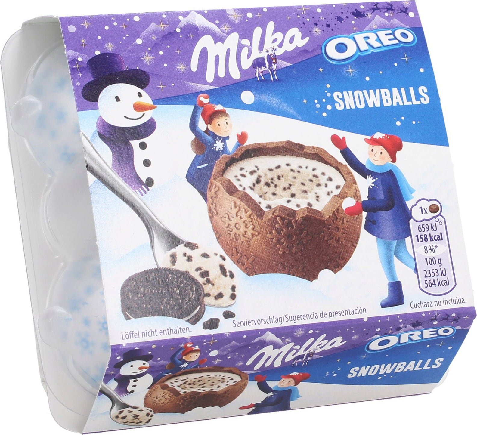 Zacht smeltende Milka Alpenmelkchocolade omhult een luchtige mousse van melkcrème. Knapperige Oreo-stukjes maken de smaak af en beloven een onweerstaanbaar genot. Voor winter en kerst in een sneeuwbolontwerp, versierd met sneeuwvlokken aan de buitenkant. Ideaal om de adventskalender te vullen, cadeau te geven of om tussendoor van te genieten.