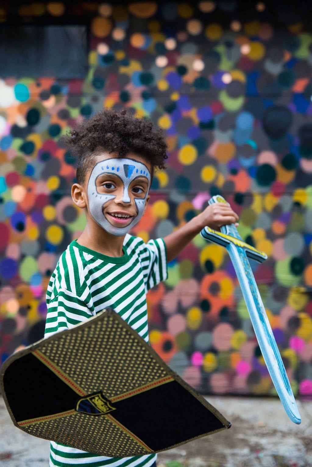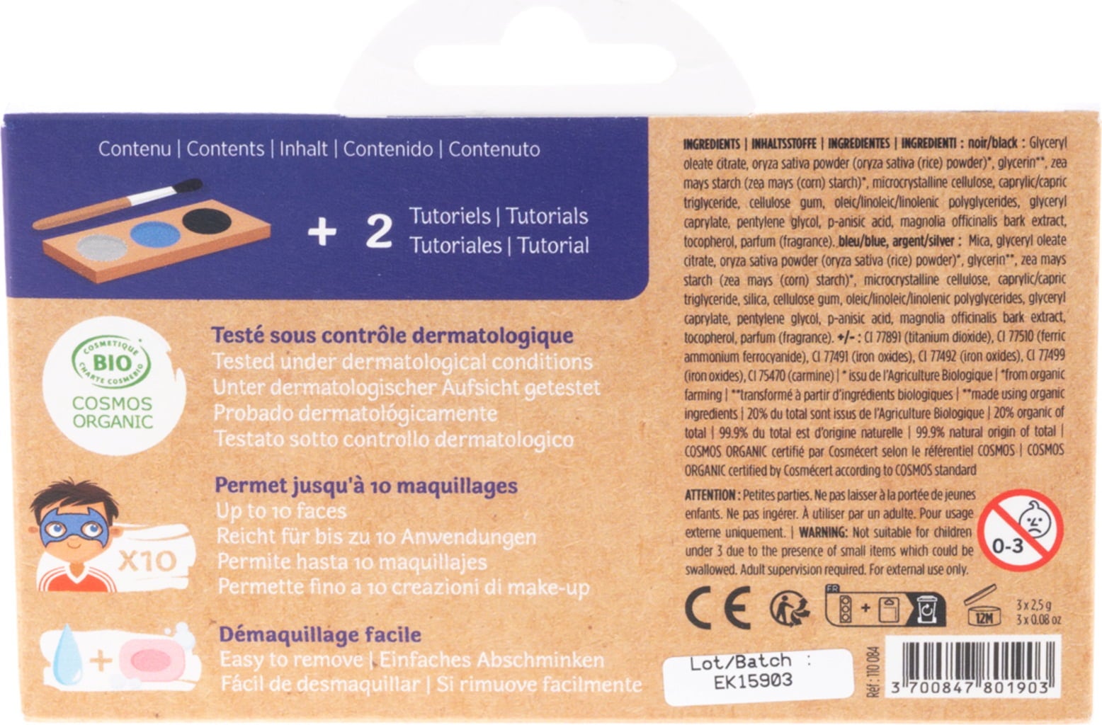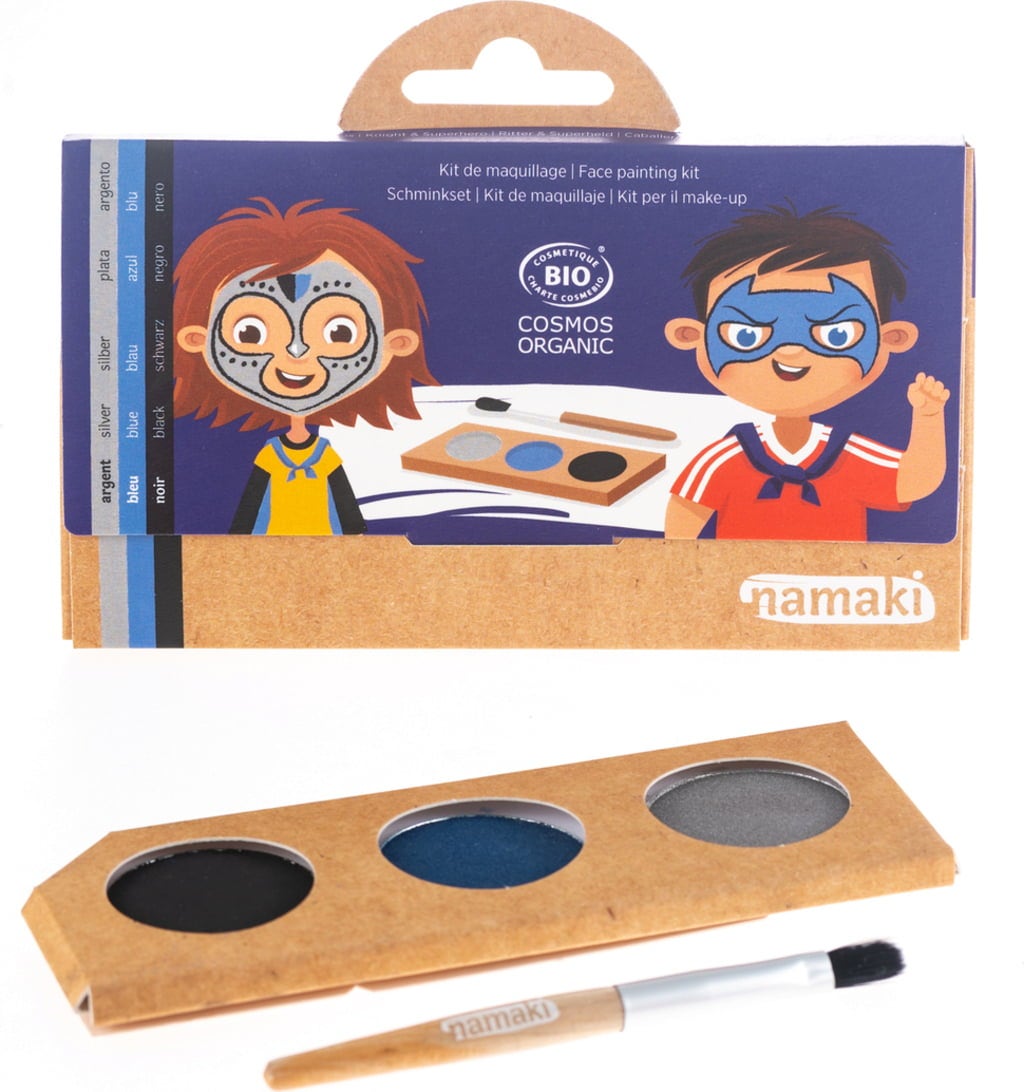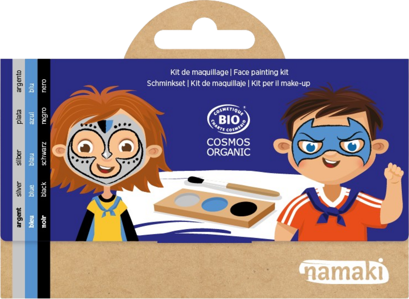 De huidvriendelijke kleuren zwart, blauw en zilver maken van ieder kind in een mum van tijd een ridder of zelfs een superheld! De hypoallergene make-up is ook heel gemakkelijk af te wassen.