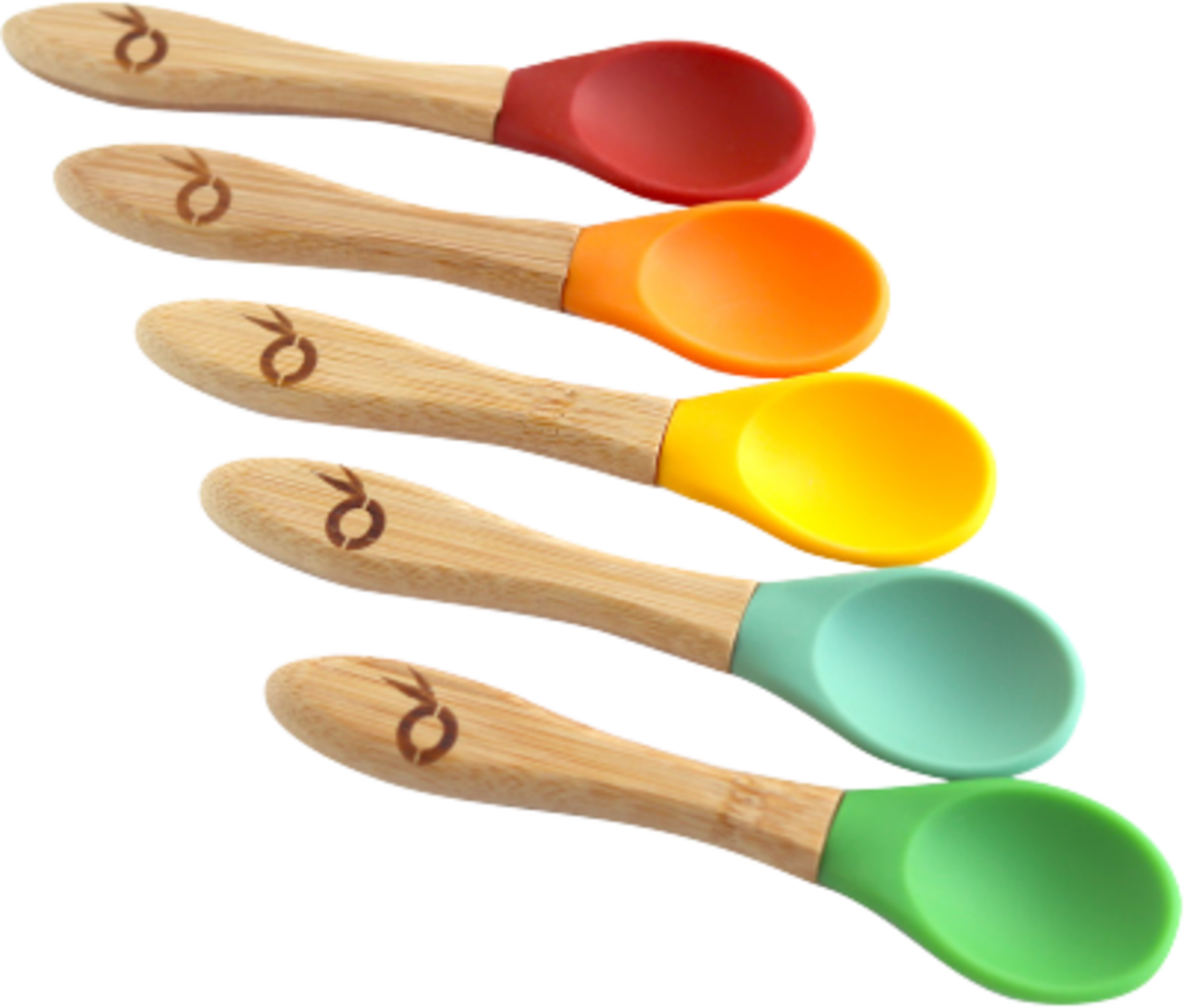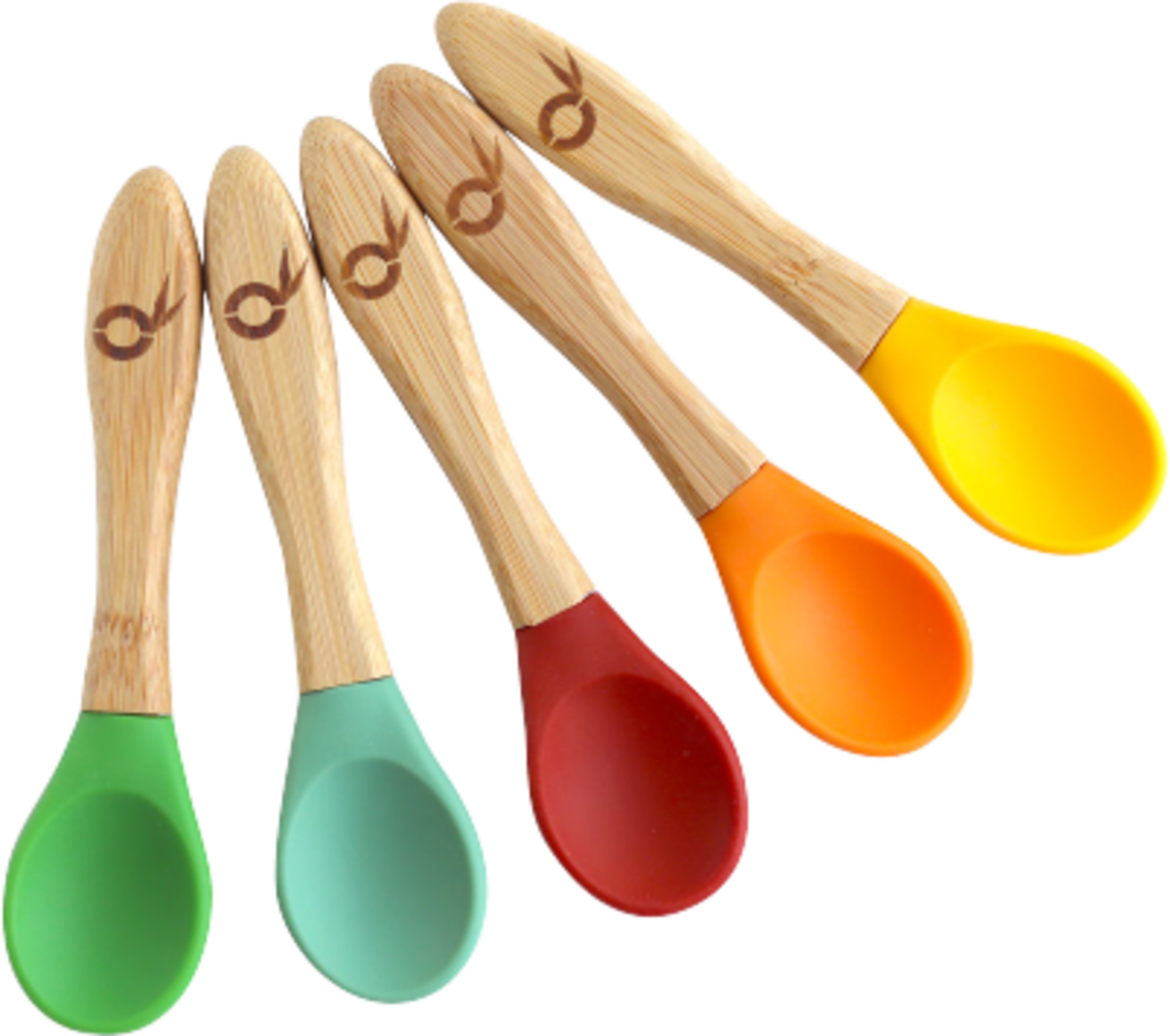 Deze kinderlepels zijn verkrijgbaar in vijf schattige kleuren en zijn gemaakt met een handvat van natuurlijk bamboe en een siliconen uiteinde. Bovendien zijn ze vrij van melamine, BPA, plastic en lijm.