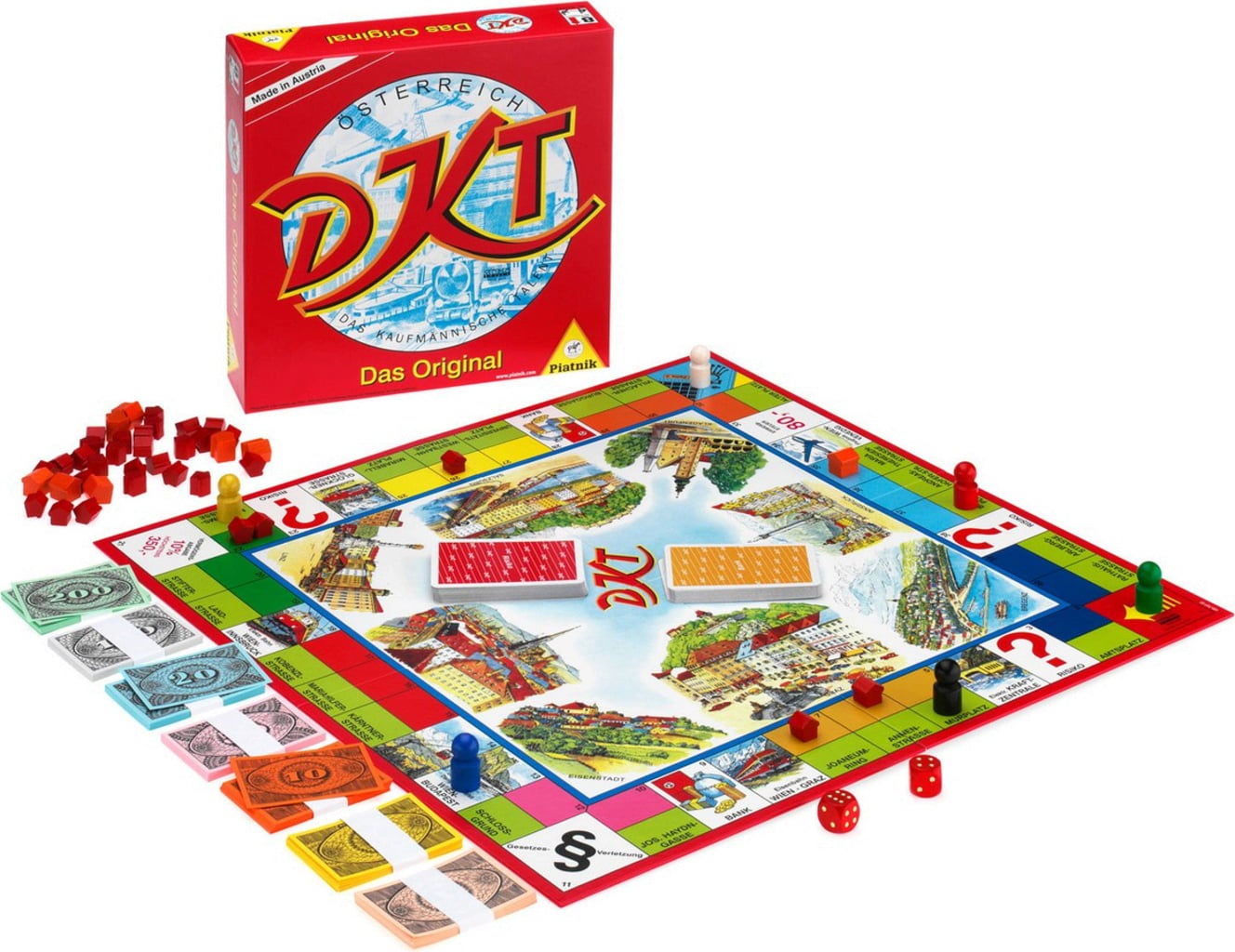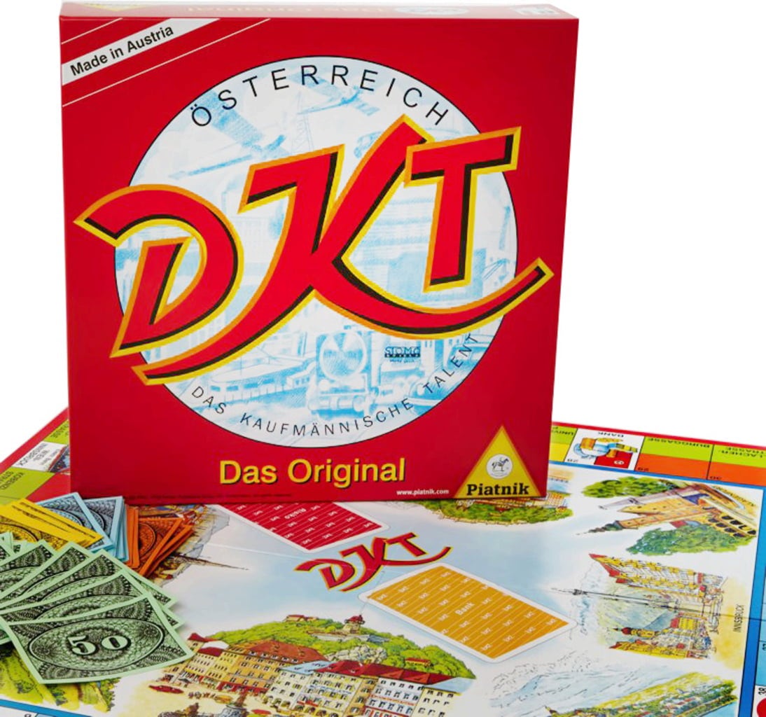 DKT - The Original van Piatnik is een populair Oostenrijks cultspel. Activa moeten worden gecreëerd door land, gebouwen en transportbedrijven in Oostenrijk te kopen en te verkopen. De speler die met vaardigheid en vooruitziende blik het meest succesvol is, wint. DKT is ideaal voor 3-6 spelers vanaf 8 jaar. Een kleine tip: het spel is ook een perfect cadeau.