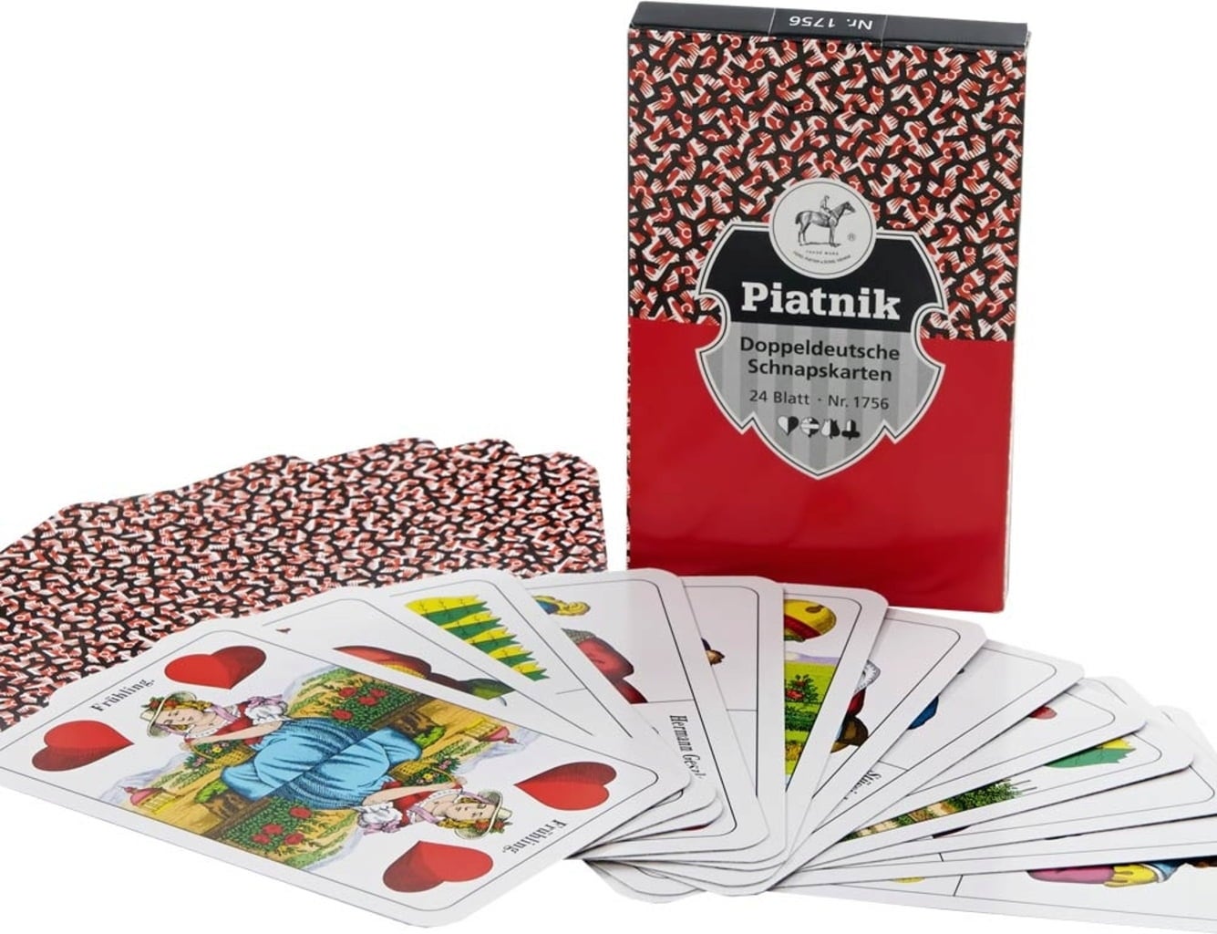 Piatnik schnaps kaarten staan synoniem voor topkwaliteit. De speelkaarten voor een van de bekendste en populairste spellen zijn ontworpen in de rode en zwarte Blitz-stijl en hebben de typische dubbele Duitse motieven. De speelkaarten zijn een perfect cadeau voor elke gelegenheid of gewoon om jezelf te verwennen. De verpakking bevat 24 speelkaarten.