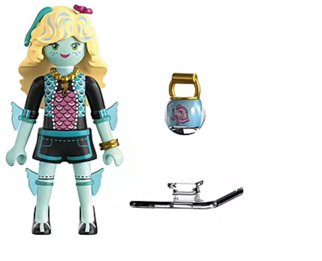 Duik in de levendige wereld van Monster High™ met deze gedetailleerde PLAYMOBIL figuur die rechtstreeks uit de diepten van de oceaan lijkt te komen. Lagoona Blue inspireert met haar onmiskenbaar vloeiende silhouet en een elegantie die een frisse wind door elke collectie laat waaien. Als bijzonder hoogtepunt wordt ze geleverd met haar doorzichtige tas in de iconische PLAYMOBIL-stijl, waarin haar trouwe visvriendje veilig opgeborgen zit. Dankzij het beproefde modulaire PLAYMOBIL-ontwerp kun je Lagoona steeds opnieuw vormgeven en het decor vormen voor creatieve avonturen. Als echte blikvanger op de plank of als de ster van je speelwereld, geeft dit figuurtje echte zeevibraties en is het een must-have voor alle fans.