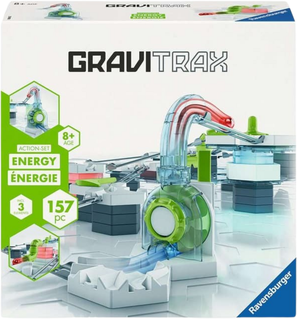 Geef je knikkerbaan een energieboost! Breng nieuwe vaart in de kinderkamer! Met de GraviTrax Action-Set Energy krijgen de knikkerbanen van je kinderen precies de kracht die nodig is voor dynamische routes vol slimme trucs. Deze set is perfect voor jonge bouwers die hun knikkers spectaculair door verschillende niveaus willen sturen en daarbij de grenzen van de zwaartekracht willen opzoeken.