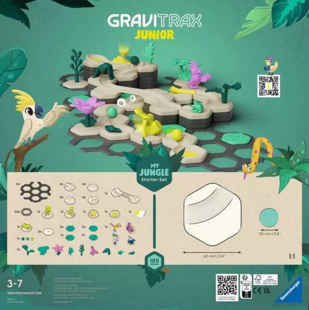 Met deze uitgebreide starter-set kunnen kinderen vanaf 3 jaar hun eigen knikkerbaan bouwen, compleet met tal van interactieve hindernissen. Dat is niet alleen leuk, maar stimuleert ook de motorische vaardigheden, het ruimtelijk inzicht en de concentratie. De kleurrijke jungle-decoratie biedt bovendien volop mogelijkheden voor een creatieve vormgeving.
