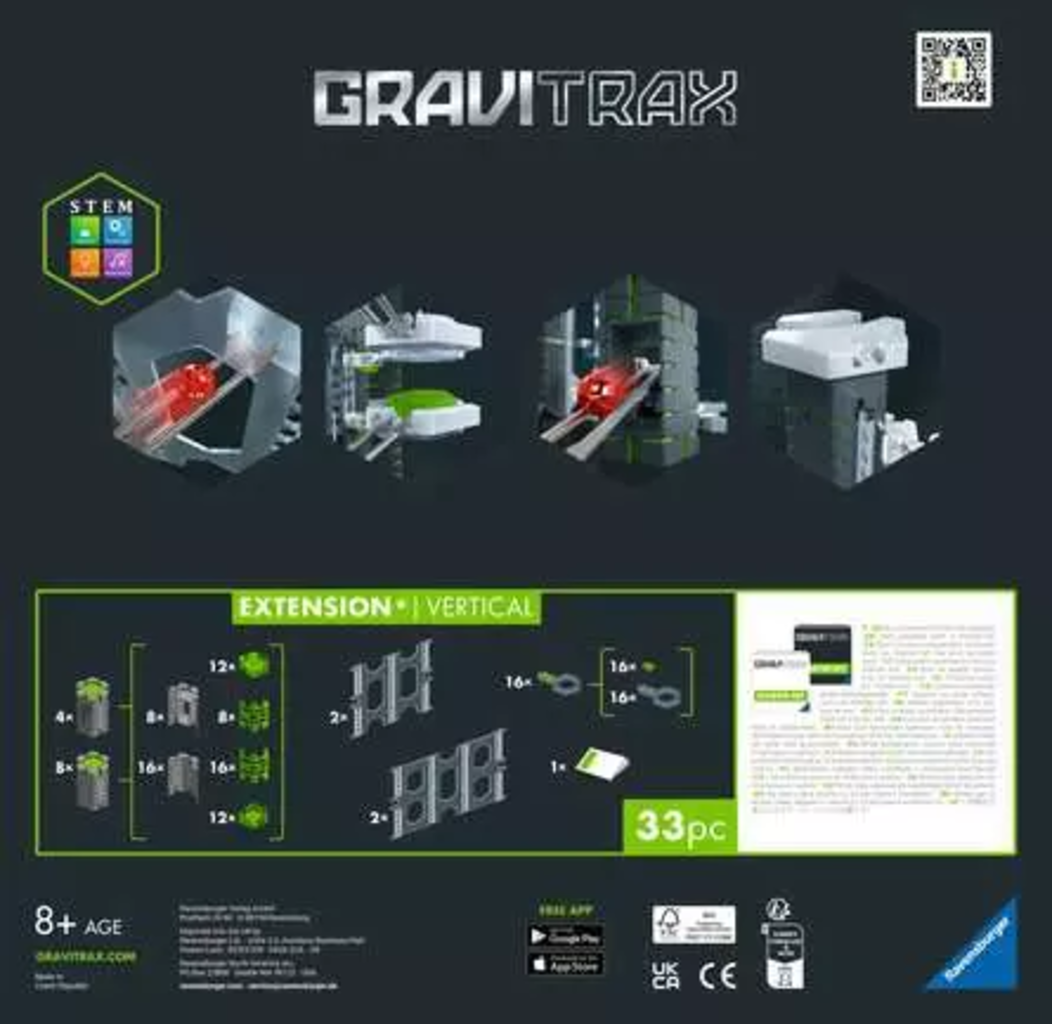 Breng je knikkerbaan naar nieuwe dimensies! Met de GraviTrax PRO Extension Vertical wordt bouwen in de hoogte kinderspel. Deze uitbreiding is de ultieme upgrade voor alle jonge bouwers die de grenzen van de klassieke baan willen verleggen en hun knikkerbaanwerelden aanzienlijk complexer willen maken.