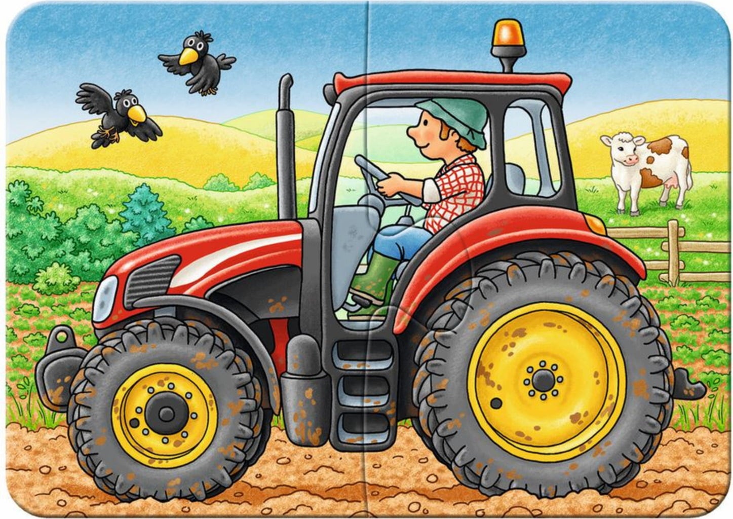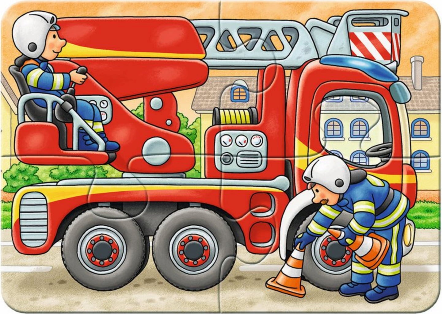 Deze uitgebreide set bevat vier geweldige puzzels met veel te ontdekken. Naast een tractor, een brandweerauto en een locomotief is er ook een indrukwekkende graafmachine die ijverig zijn werk doet.