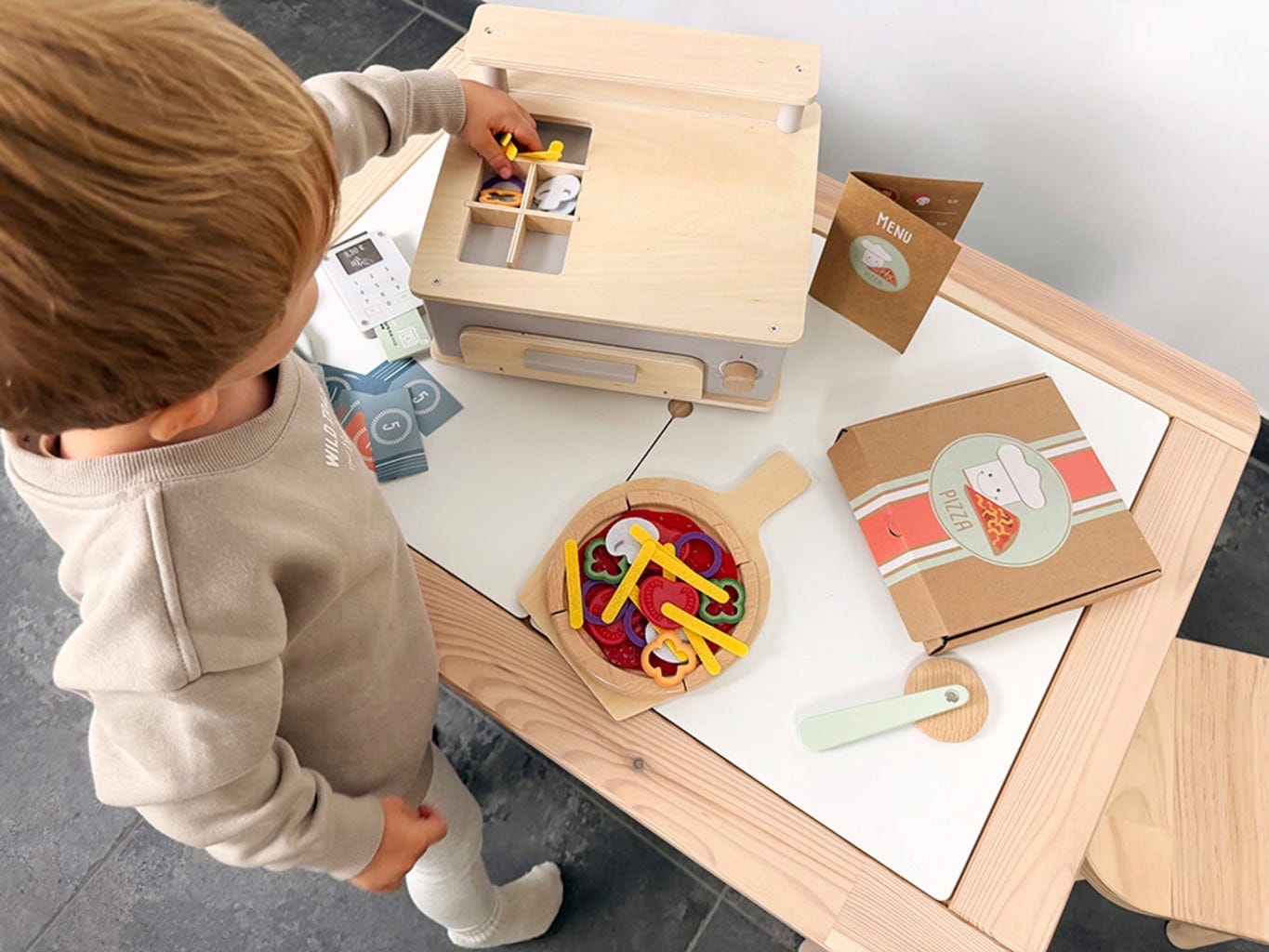 Met deze pizzeria-set veranderen kinderen in echte pizzabakkers en obers. De liefdevol vormgegeven pizzaoven, de omkeerbare ingrediënten en de praktische accessoires nodigen uit tot fantasierijk spel. Bovendien stimuleert het op een speelse manier zowel de motorische vaardigheden als de sociale competenties. Ideaal om de beleving van een echt restaurant gewoon naar de woonkamer te halen!