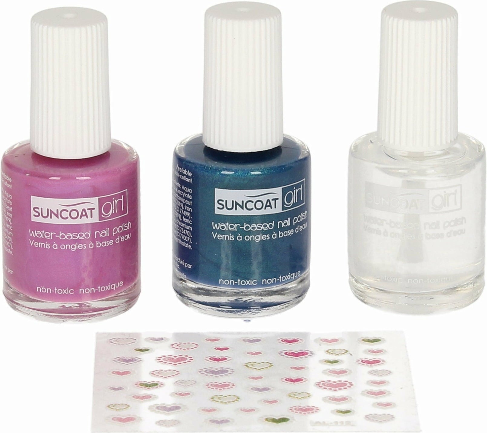 Deze leuke cadeauset voor meisjes bevat drie nagellakken en een set nagelstickers.