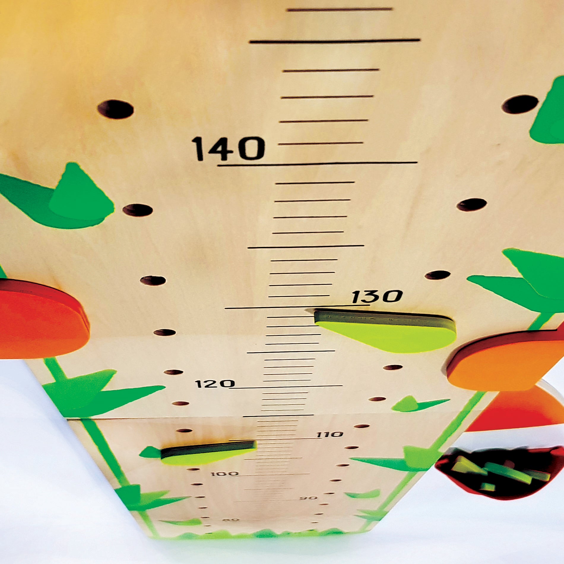 Panda's staan niet bepaald bekend als de meest actieve dieren. Maar als de kinderen hun maat komen opmeten, is de gezellige beer ineens klaarwakker en let hij goed op. Deze veilige constructie van vier MDF-platen en sterke koorden is een must in elke kinderkamer. Zet hem rechtop, steek de houten pijl op de juiste plaats en richt hem uit - het is echt makkelijk te gebruiken en erg leuk!