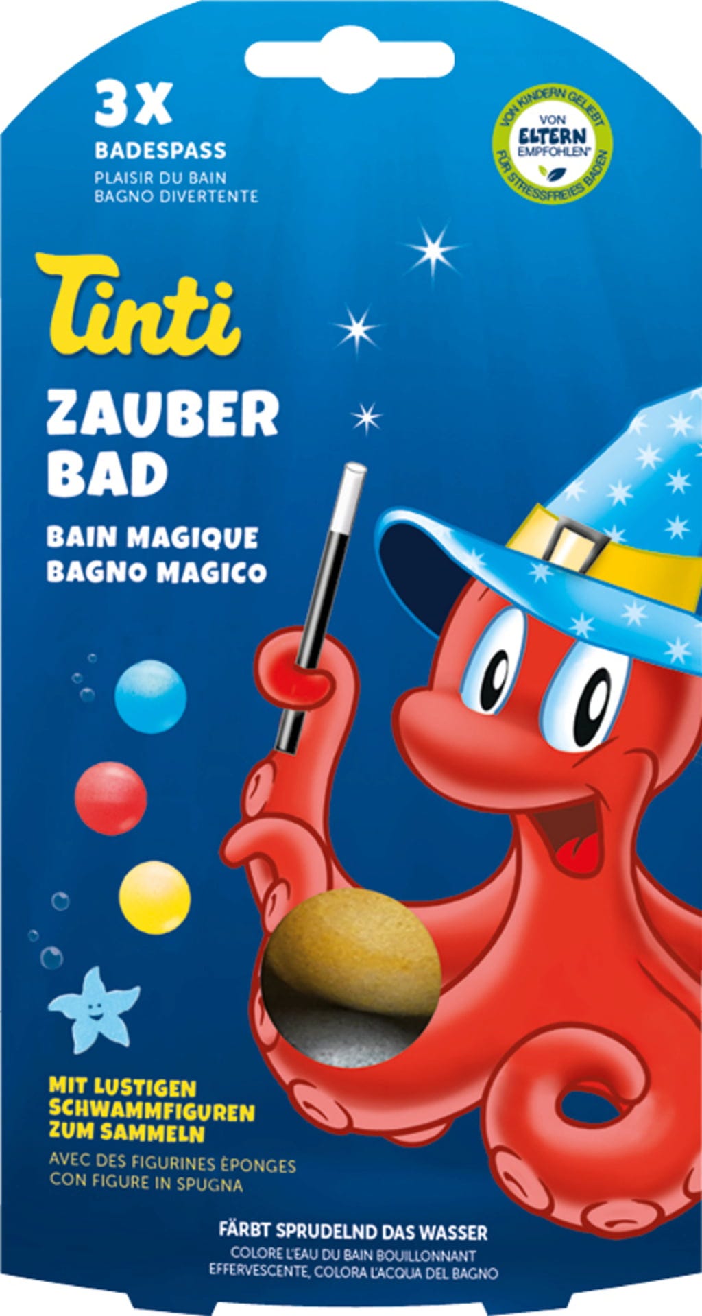 Bruisend en heerlijk geurend badplezier voor kleine waterratten. Elke bal kleurt het badwater in de bijbehorende kleur. Zodra de bal volledig is opgelost, blijft er een leuke sponsfiguur achter om mee te spelen. Daarnaast bevat de verpakking grappige stickers waarmee je je schooltas, tekenblok of andere spullen kunt versieren.