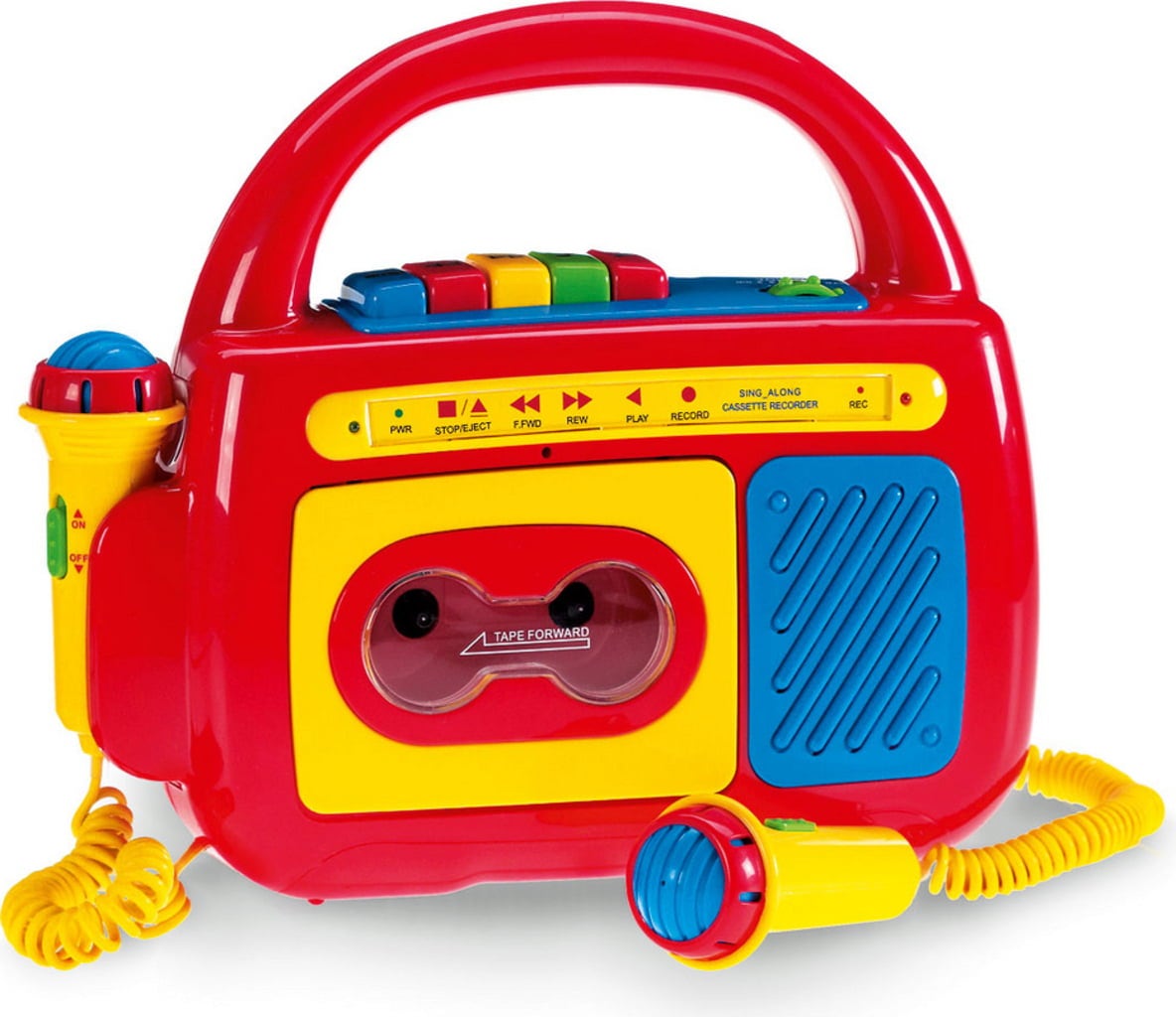 Deze ingenieuze cassetterecorder is perfect voor alle muziekfans. De twee microfoons versterken de stem zodat kinderen hun favoriete hits kunnen meezingen. Het kindvriendelijke ontwerp van de cassettespeler maakt hem eenvoudig in gebruik, zodat zelfs de allerkleinsten meteen aan de slag kunnen.