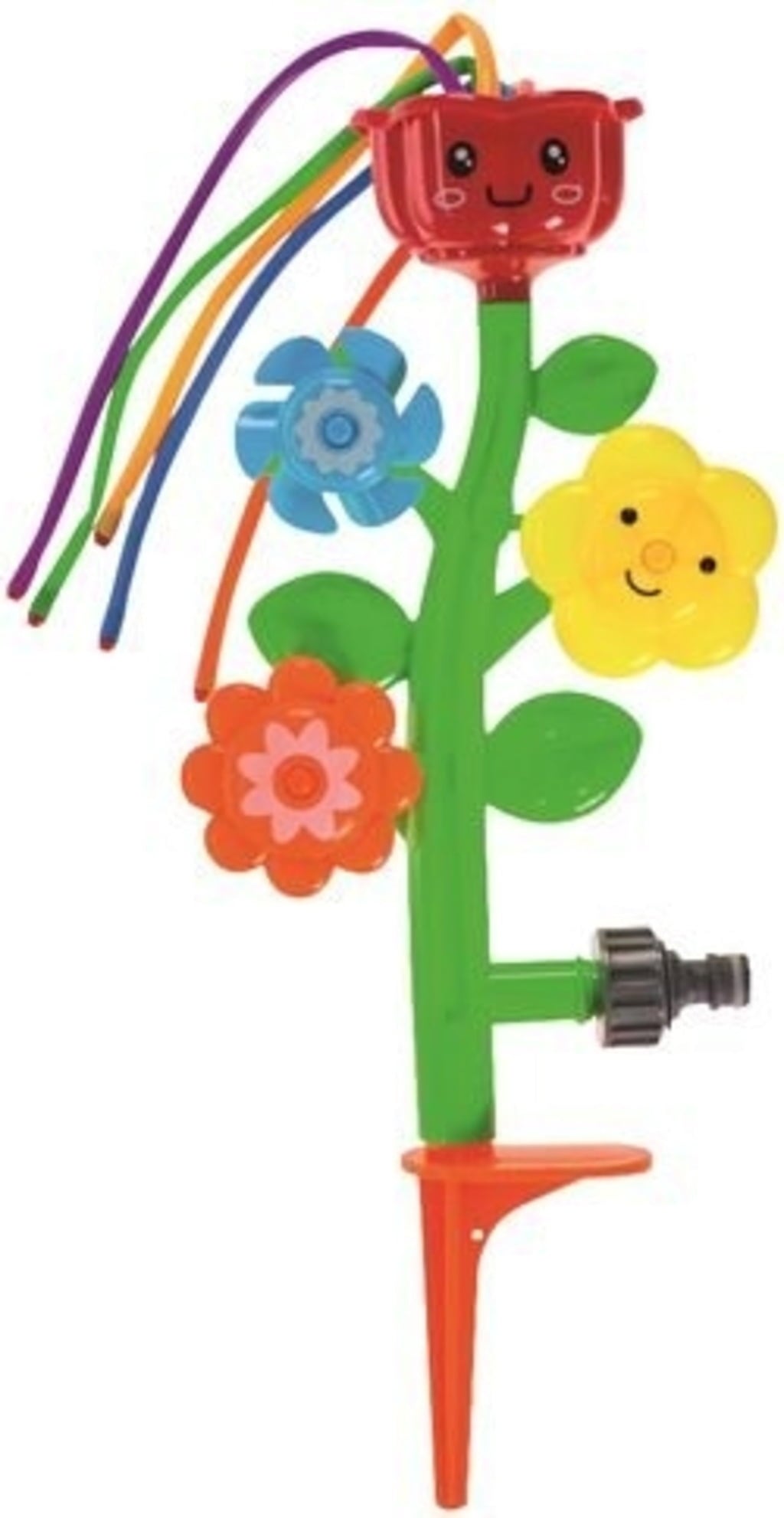 Meestal geven mensen de bloemen water, maar bij deze is het andersom! De kleurrijke watersproeier voor kinderen zorgt voor aangename verkoeling op warme zomerdagen. Zodra het apparaat is aangesloten op de tuinslang, spuit het water uit de slangen en komen de bloemen in beweging.