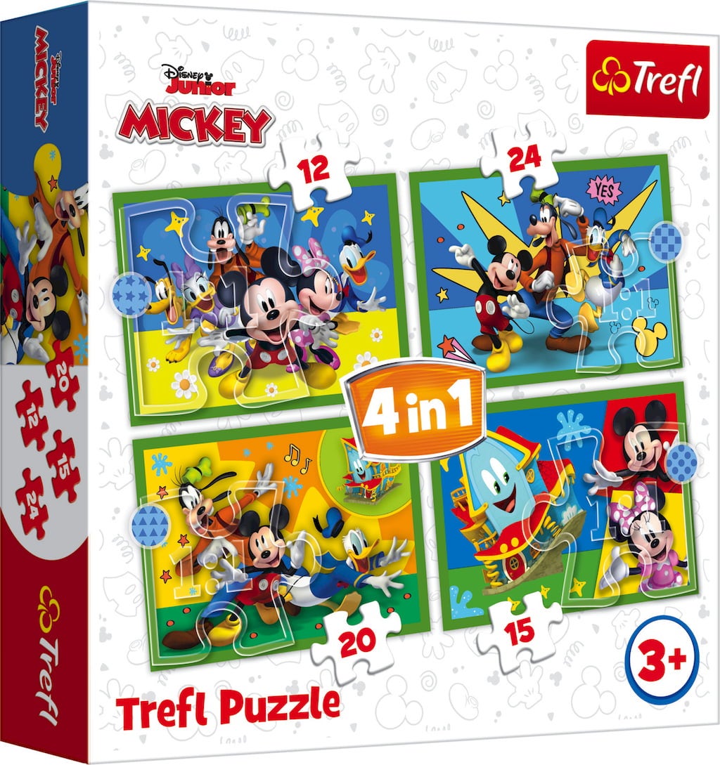 Trefl 4 in 1 Puzzle - Mickey Mouse und Freunde 12,15, 20, 24 Teile