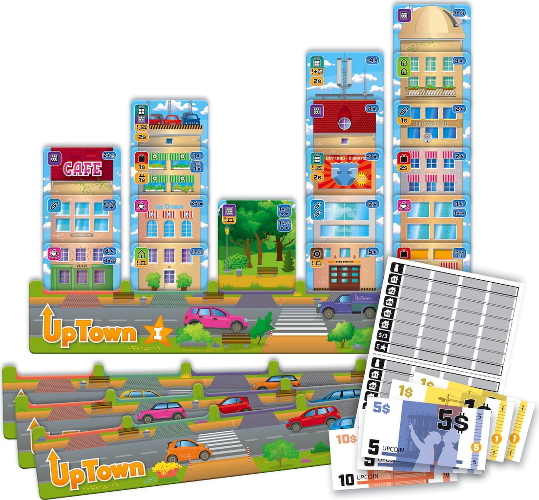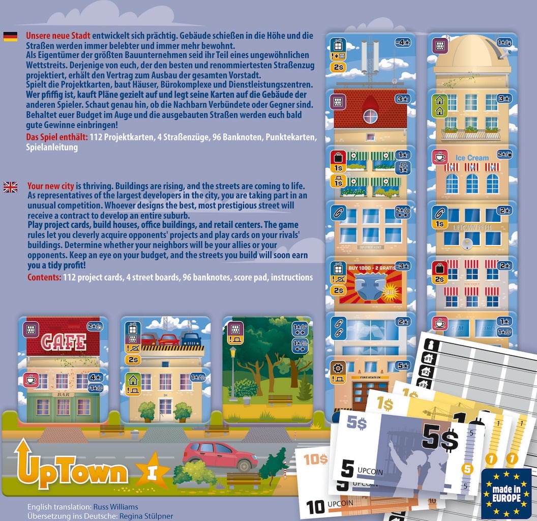 Inhoud: 112 projectkaarten, 4 straten, 96 bankbiljetten, scorekaarten